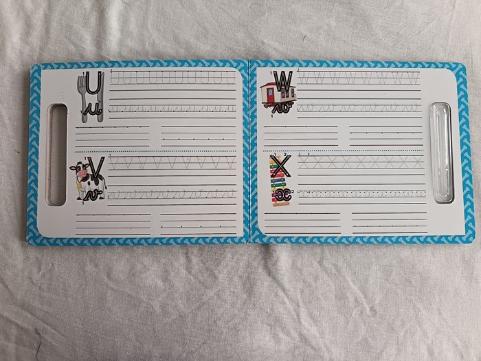 Manque le feutre mais peut être remplacé par un feutre à ardoise blanche que l'on trouve dans le commerce