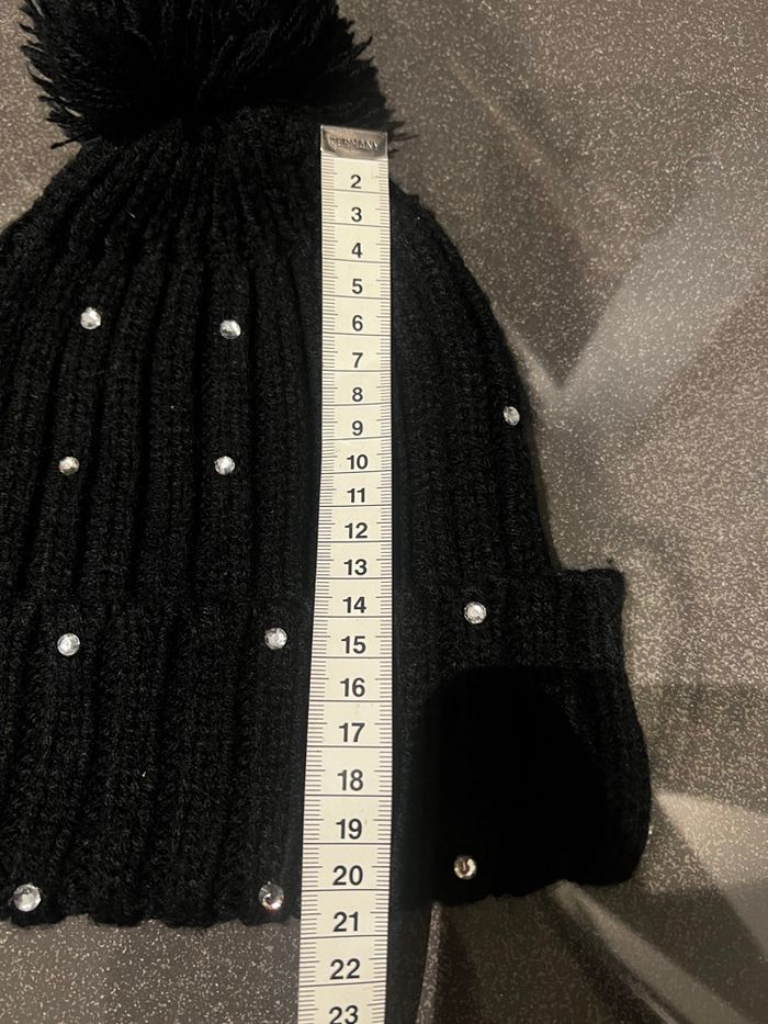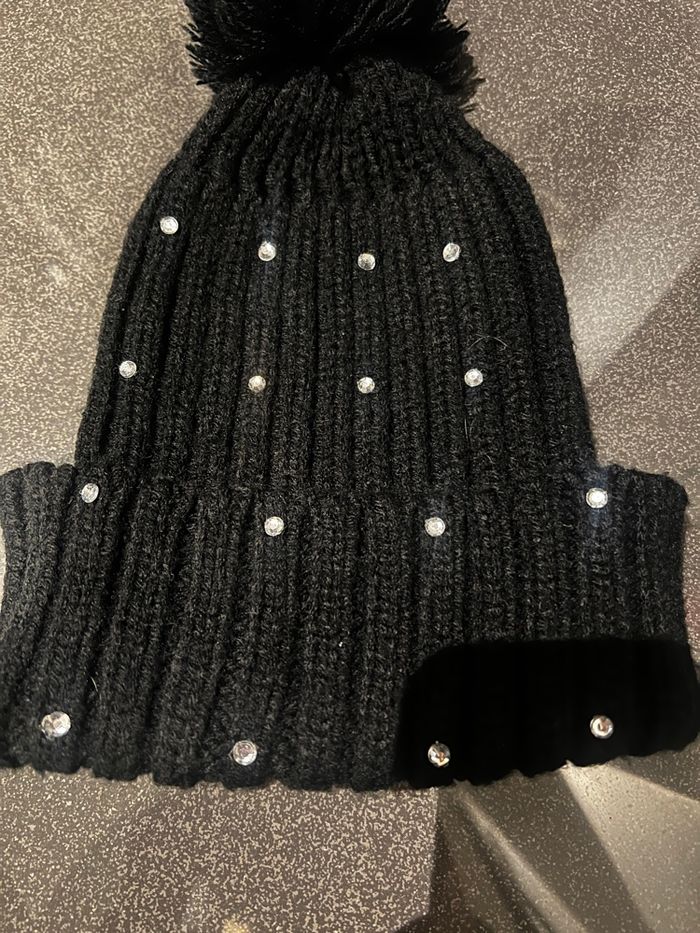 Joli lot de deux bonnets noirs ornés de strass brillants.
