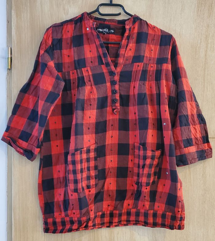 Haut chemise carreau rouge / noir : T L : Jennyfer : Petite tâche devant et quelques fils des paillète qui dépassent