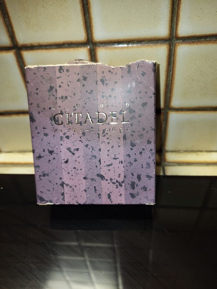 Apres rasage AVON BLACK SUEDE 100ML pour homme .vintage 1980 lance .citadel .bouteille effet marbre .colonne romaine .neuf et plein