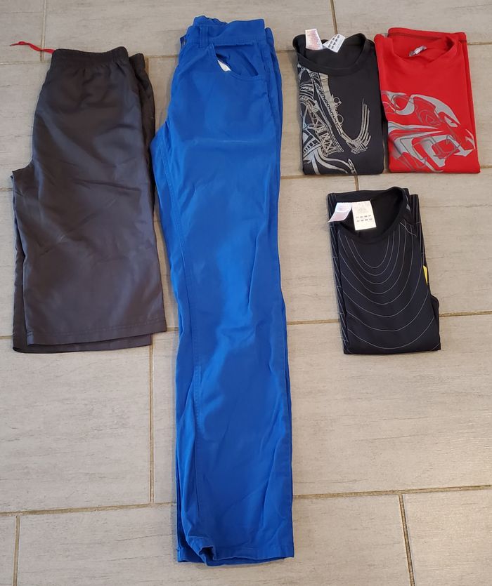 Pantalon bleu : T16ans : Bikool : Légèrement usé sur un genou