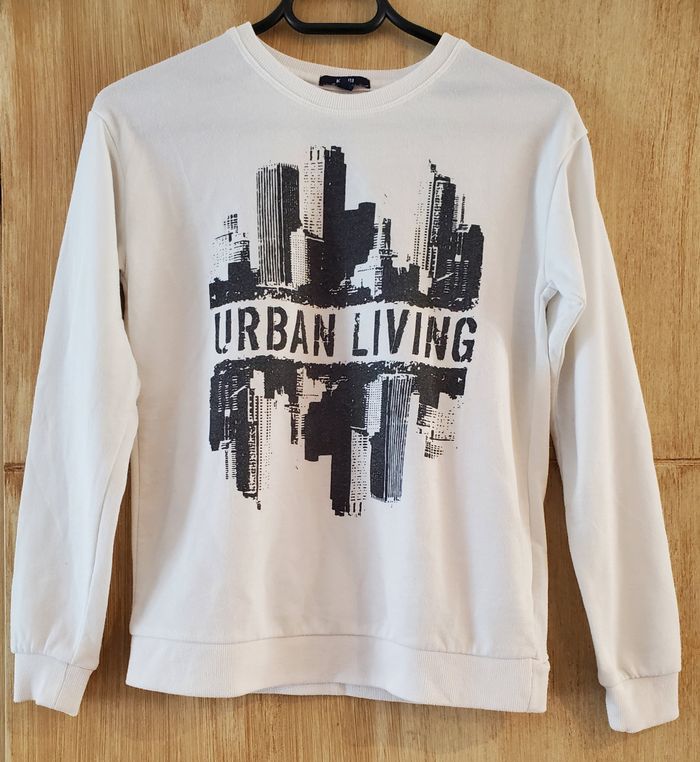 Pull blanc : T XS : Kiabi : Bien porté et une tâche sur le derrière d'une manche
