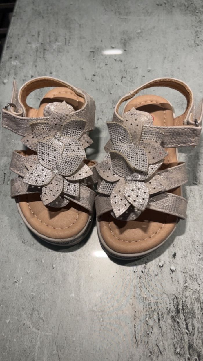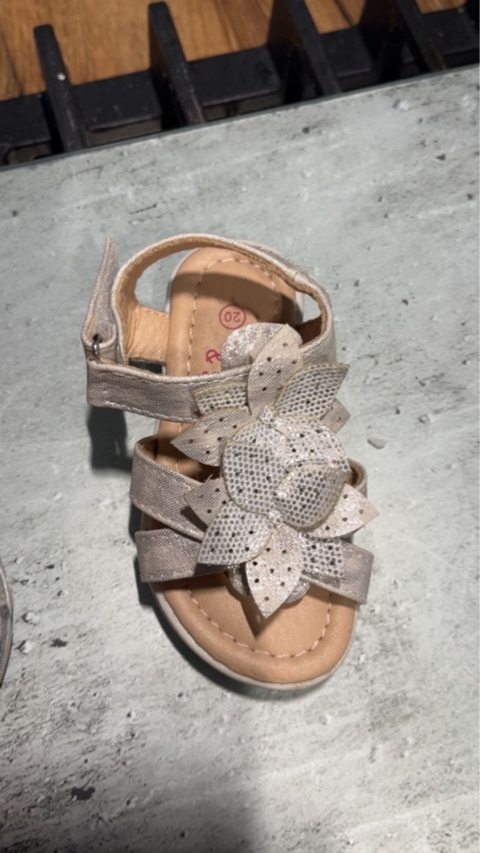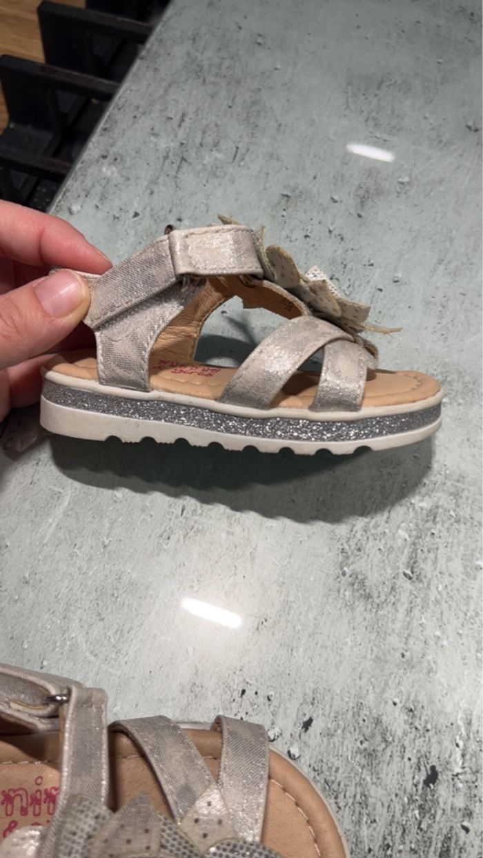 Vend une paire sandale fille mise deux fois elles sont en très bon état en taille 20 avec la semelle paillette et effet irisé sur le dessus.