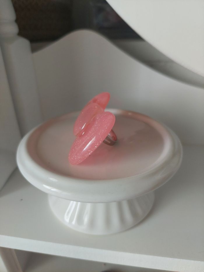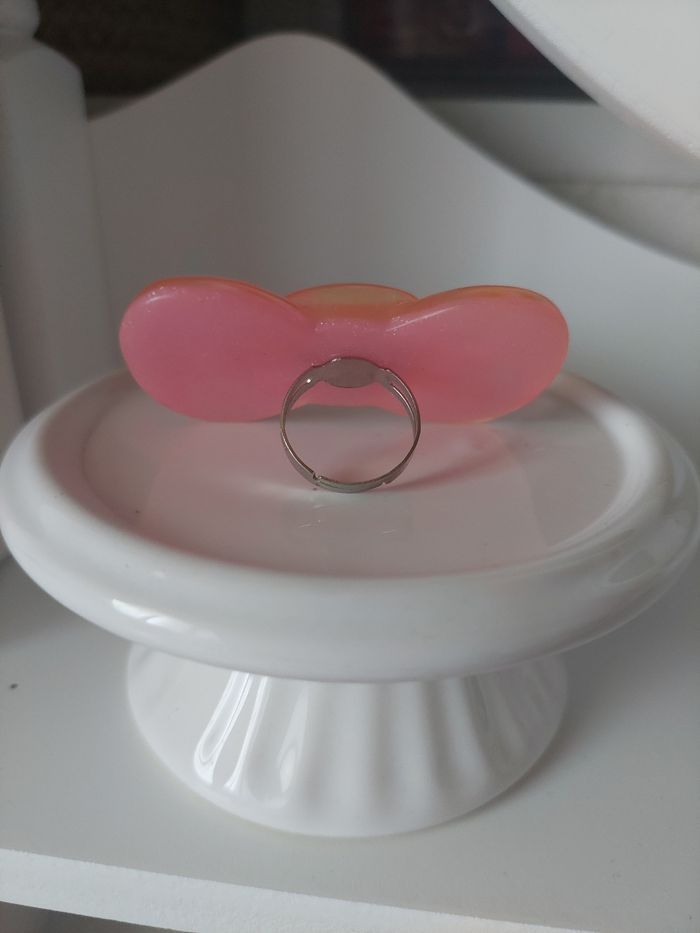 〰️ Grosse bague noeud en résine, Hello Kitty, rose à paillettes, réglable