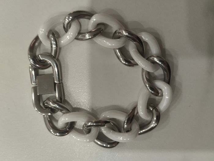 CERRUTI Bracelet en céramique blanche et acier chromé