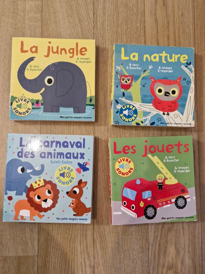 Livres d'occasion en très bon état général, j'ai renforcé et scotché les couvertures si besoin. Les piles sont neuves et toutes les puces de sons fonctionnent parfaitement (sauf livre offert)