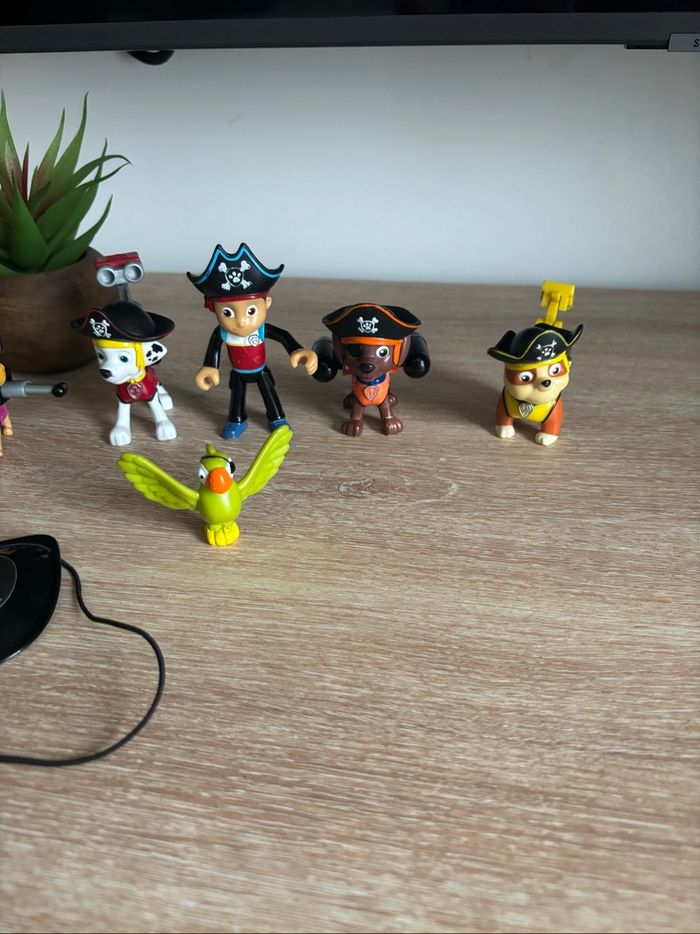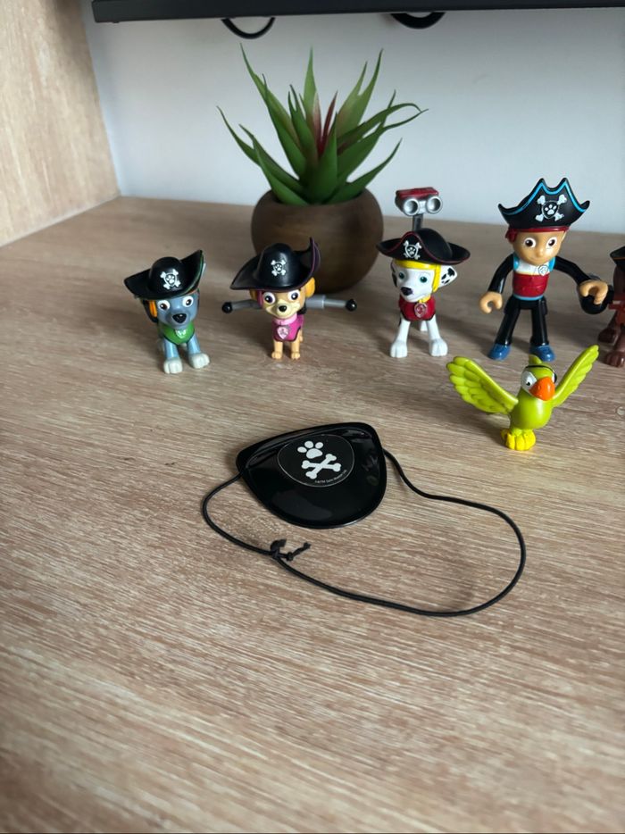 Lot 6 figurines pat patrouille pirate action pup’s Vrai figurine pirate achète cher. Il manque Chase que je n’ai pas. Ils ont un collier qui actionne leur sac à dos. Marcus j e patte cassé J’ai rajouté un cache œil pirate pat patrouille