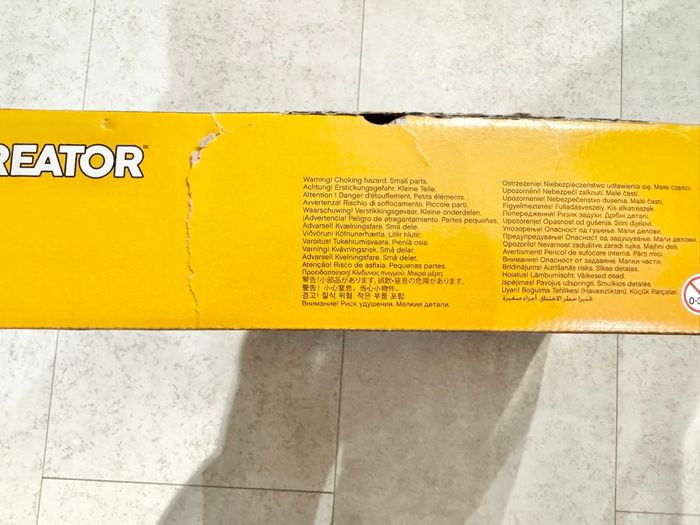 ⚠️ Boîte légèrement déformée + une déchirure en-dessous (voir photos).