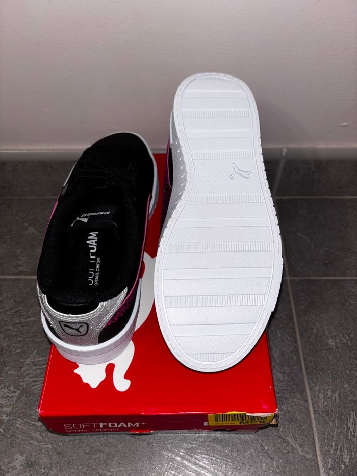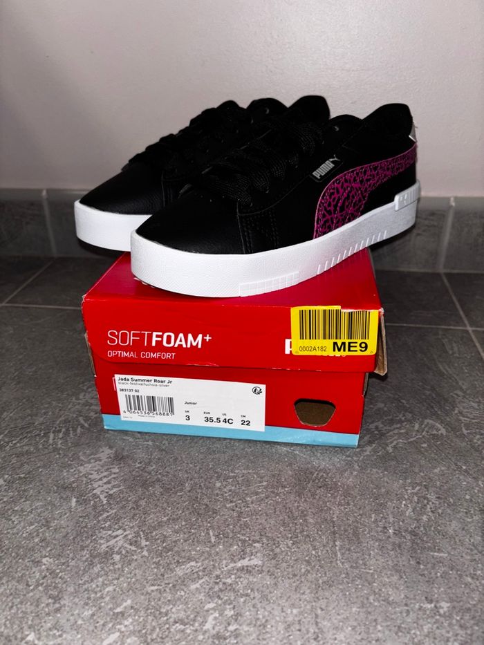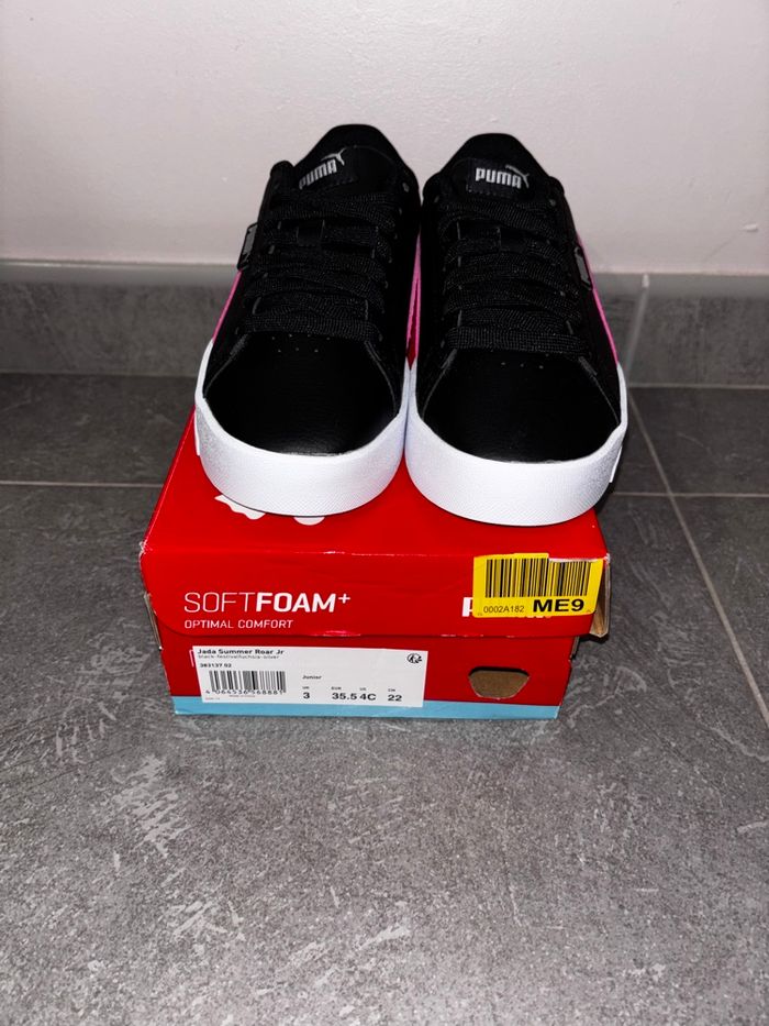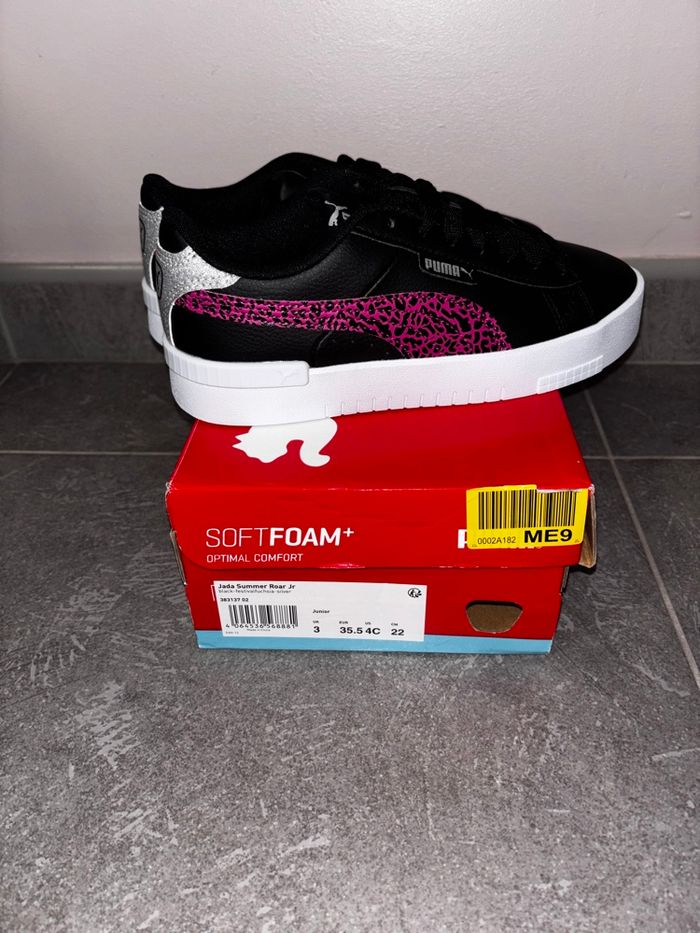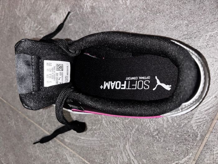 Basket Puma Original Neuf jamais porté . Pointure: 35,5 . Couleur : Noir & fushia PS: vous pouvez vérifier l’originalité des baskets .via le QR Code de l’étiquette de la Basket.