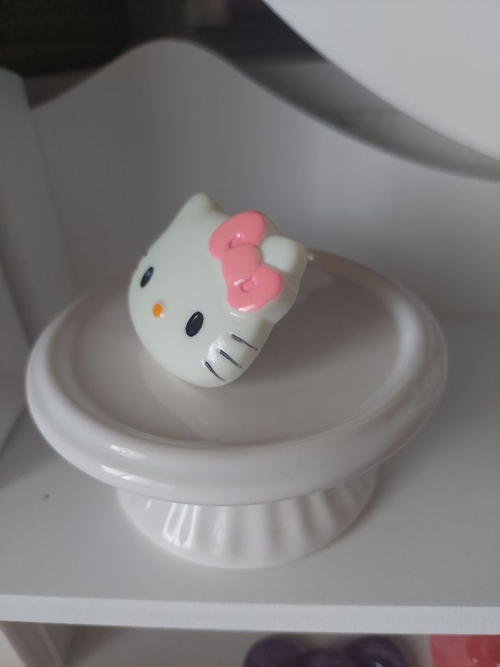 〰️ Grosse bague en résine, tête Hello Kitty, réglable