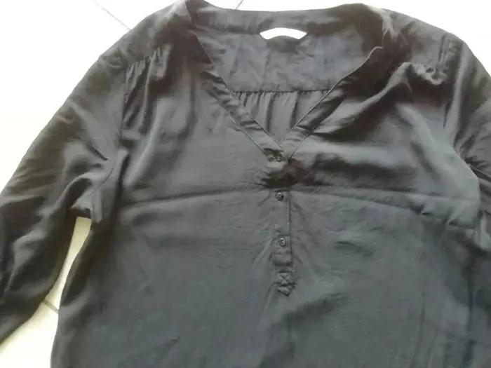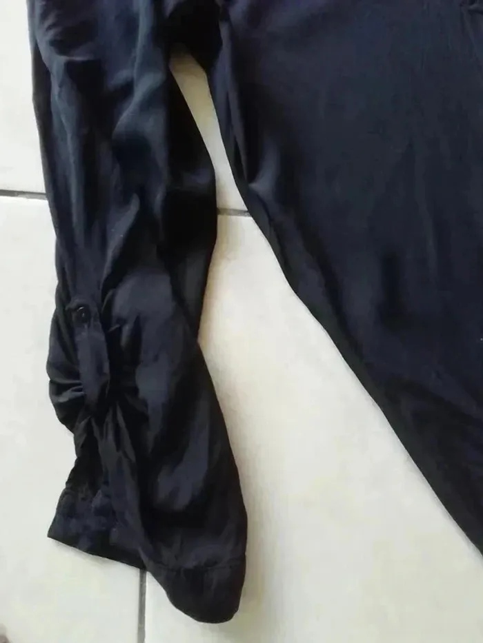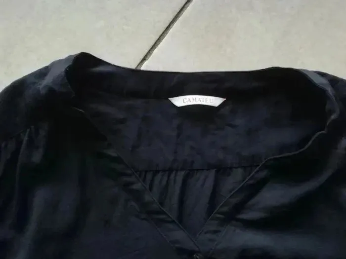 DE COULEUR NOIR. MARQUE CAMAIEU. TRES JOLIE PORTEE. LIENS POUR REMONTER LES MANCHES. SUPER ETAT CAR TROP JUSTE; TAILLE NOTEE 46 MAIS PLUTOT 42/44 VOIR PETIT 44 PAS PLUS; VOIR MENSURATIONS CI DESSOUS : HAUTEUR : env 77cm. LARGEUR AISSELLE : env 47-58cm. LARGEUR COUTURE EPAULES : env 40cm.