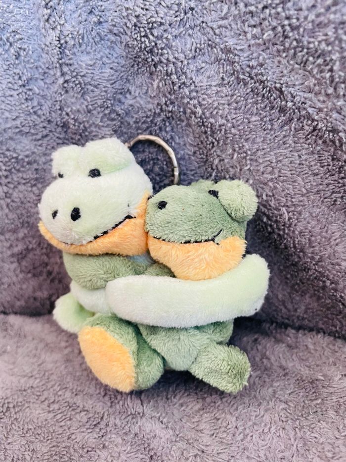 Joli porte clés grenouille 2 petites grenouilles en peluche s’entrelaçant Neuf #stefetjuju51accessoires maison non fumeurs bien d’autres choses dans mon dressing de nouveaux articles très régulièrement nombreux # dans mon profil pour faciliter vos recherches merci pour votre visite et belle journée ☺️ #portecles #grenouille #peluche