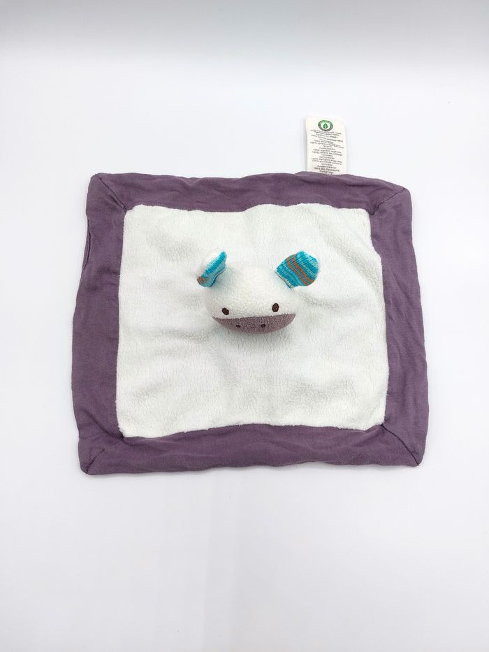 Doudou plat cheval âne blanc violet NATURE et découvertes mauve anneau dentition