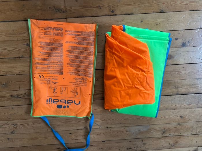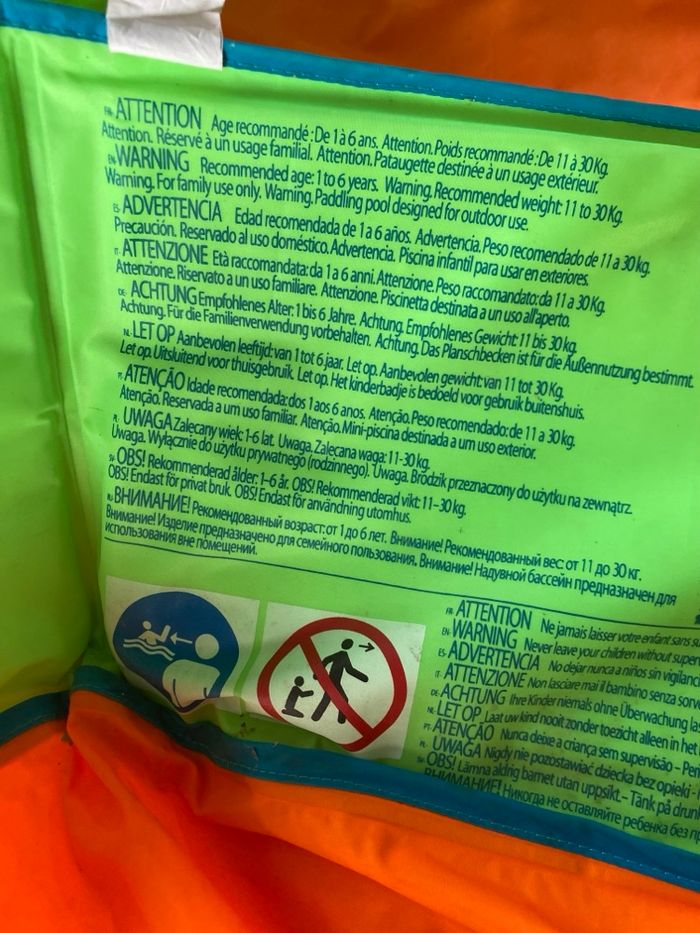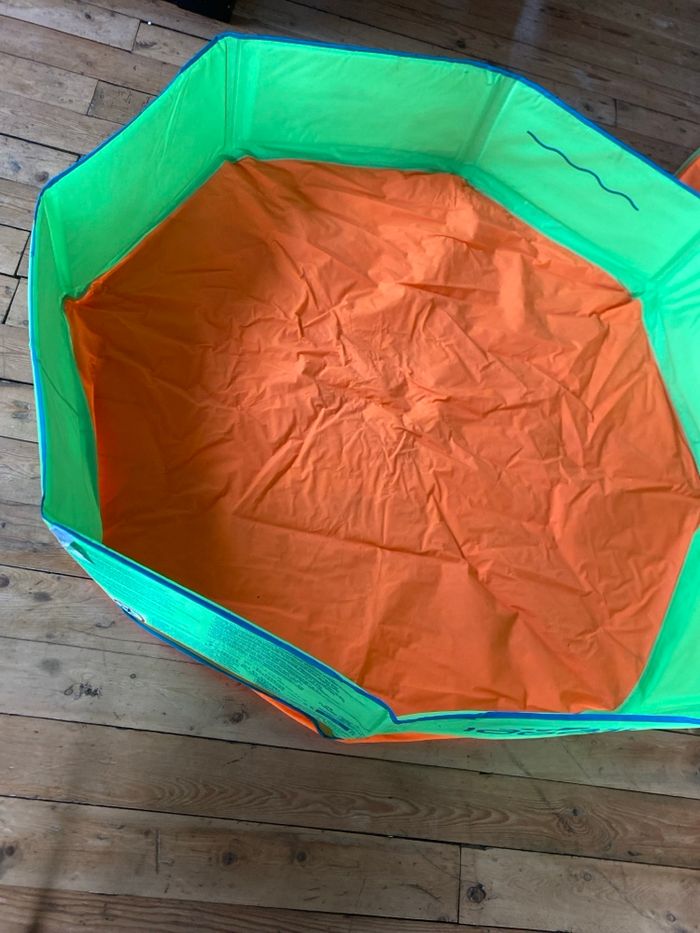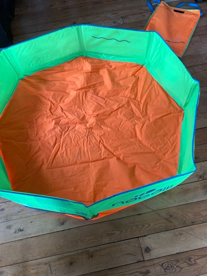 Piscine bébé enfant decathlon Orange et vert Diamètre 120 cm Hauteur 25 cm Dès 12 mois jusqu'à 6 ans Sac de rangement