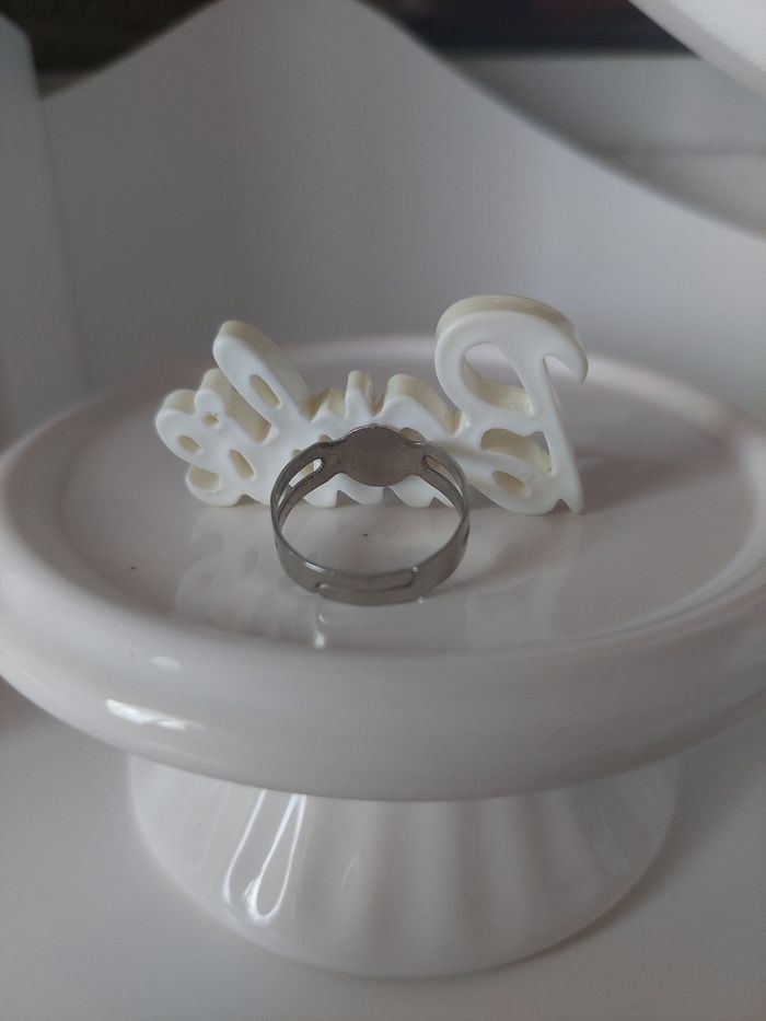 〰️ Bague en résine, écriture Barbie, blanc, réglage