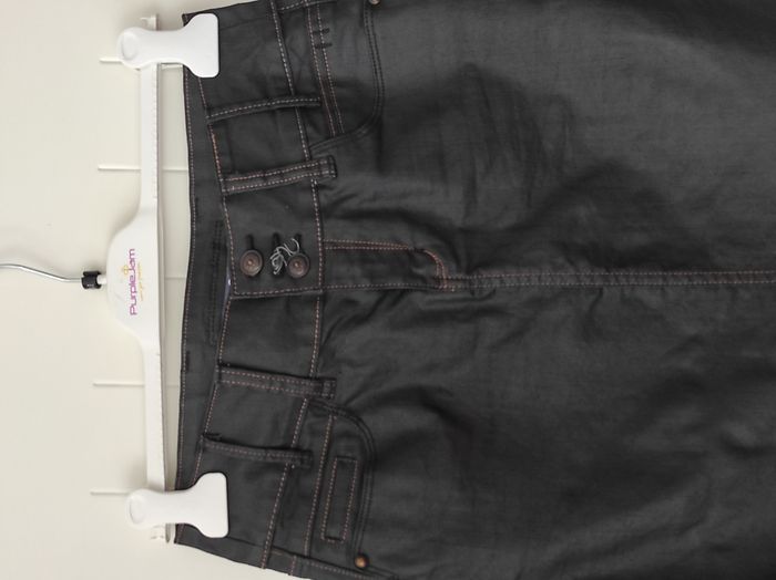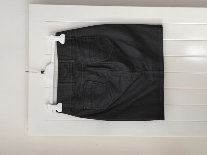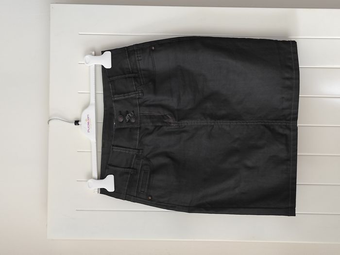 "Jupe en jean pour femme, taille 38, avec un effet huilé qui apporte une touche tendance.