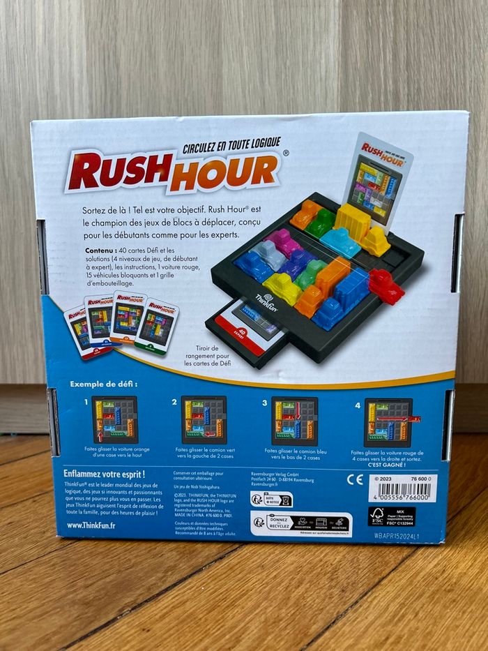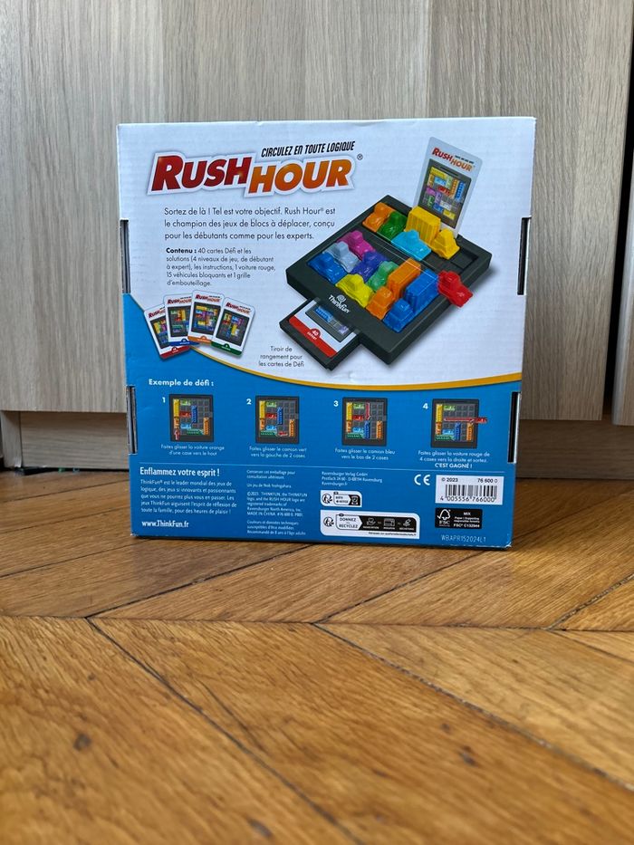 Neuf, jamais ouvert !!! Voici un jeu d'exception! Un des jeu qu'on garde à la maison tres tres longtemps, pour petits , grands et meme pour les parents ! Un jeu brillant comme il n'y en a pas beaucoup !! Rush Hour est le champion des jeux de logique à résoudre seul. Avec logique et réflexion, le joueur doit relever 40 défis de niveau progressif. Emmenez la voiture rouge jusqu'à la sortie ! Alors prêt à relever le défi ?
