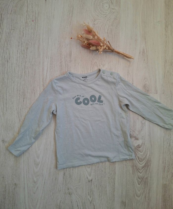 Adorable t-shirt Kiabi en 36 mois, couleur vert d’eau très douce.