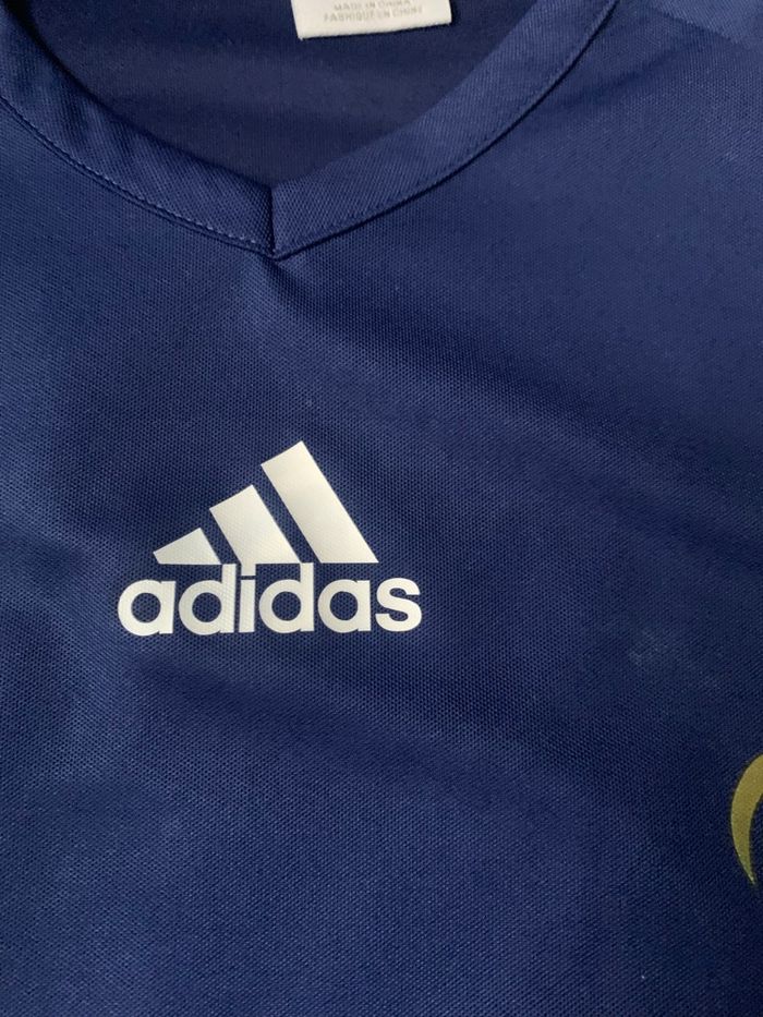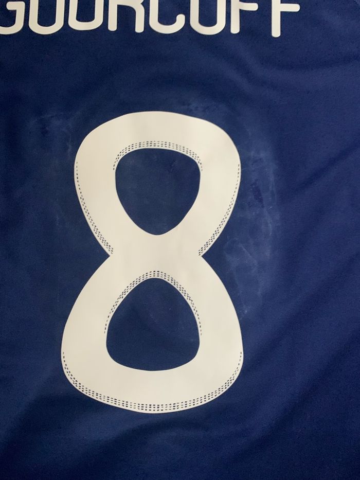 Bonjour Tee shirt de l’équipe de France Gourcuff En bon état Des traces blanche sont présentes près du chiffre, mais aucun autre défaut n’est à signaler Chiffre et écriture en très bon état Taille M/ authentique / année 2010 Envoie rapide et soigné