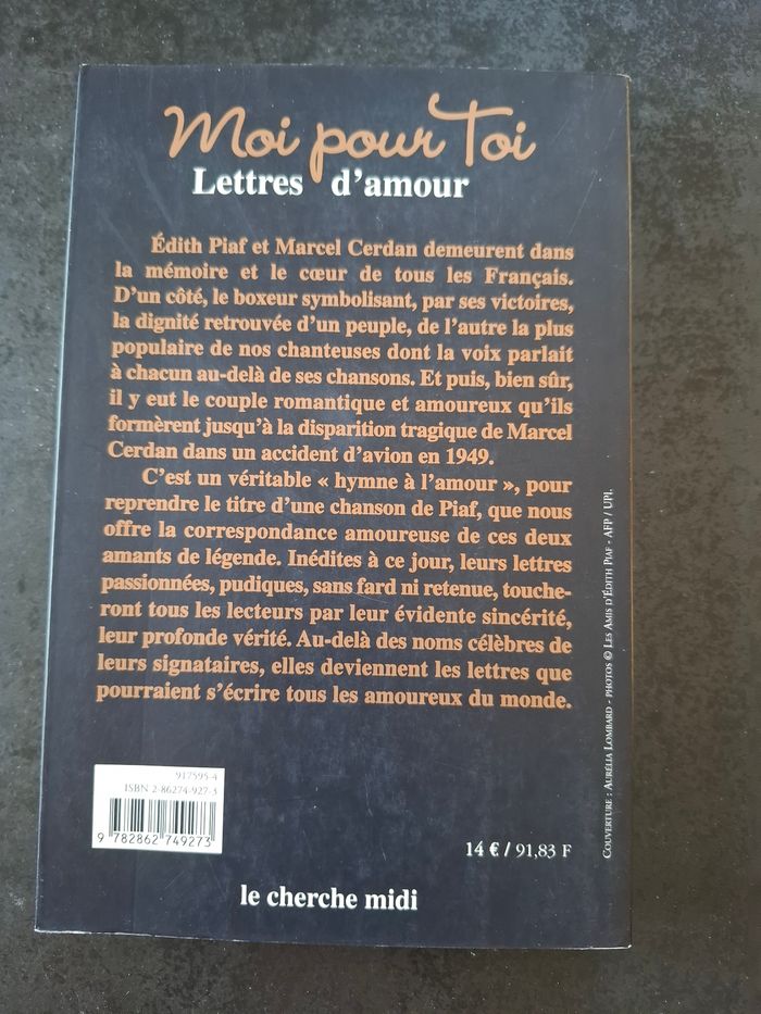 Récit Piaf Cerdan Moi pour toi Lettres d'amour en très bon état