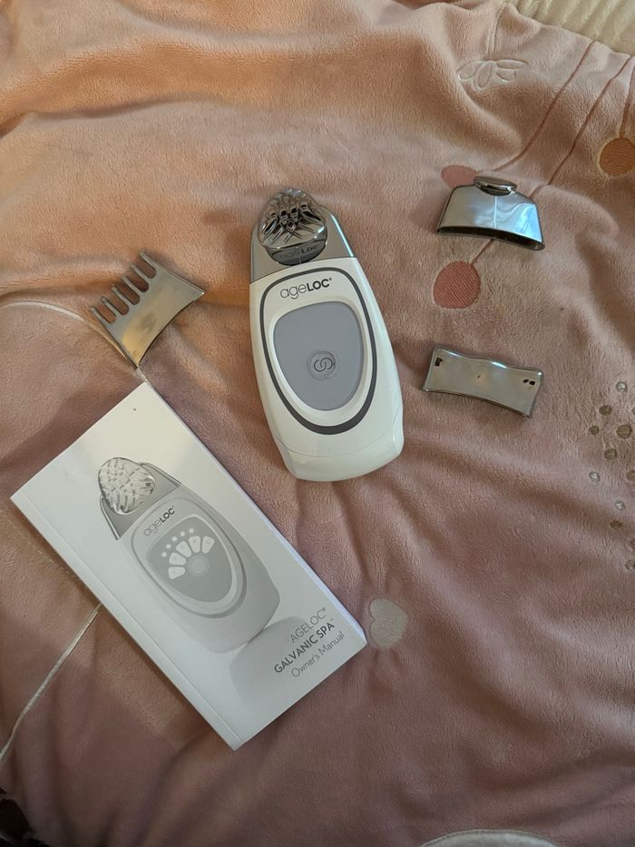 Je vends l’appareil ageLOC® Galvanic Spa de Nu Skin, un appareil de soin visage haut de gamme utilisé pour améliorer l’apparence de la peau grâce à la technologie galvanique.