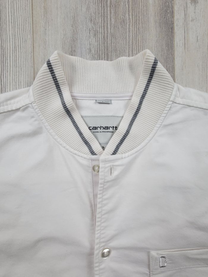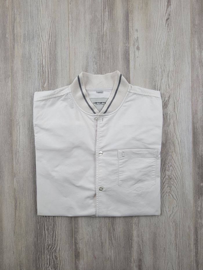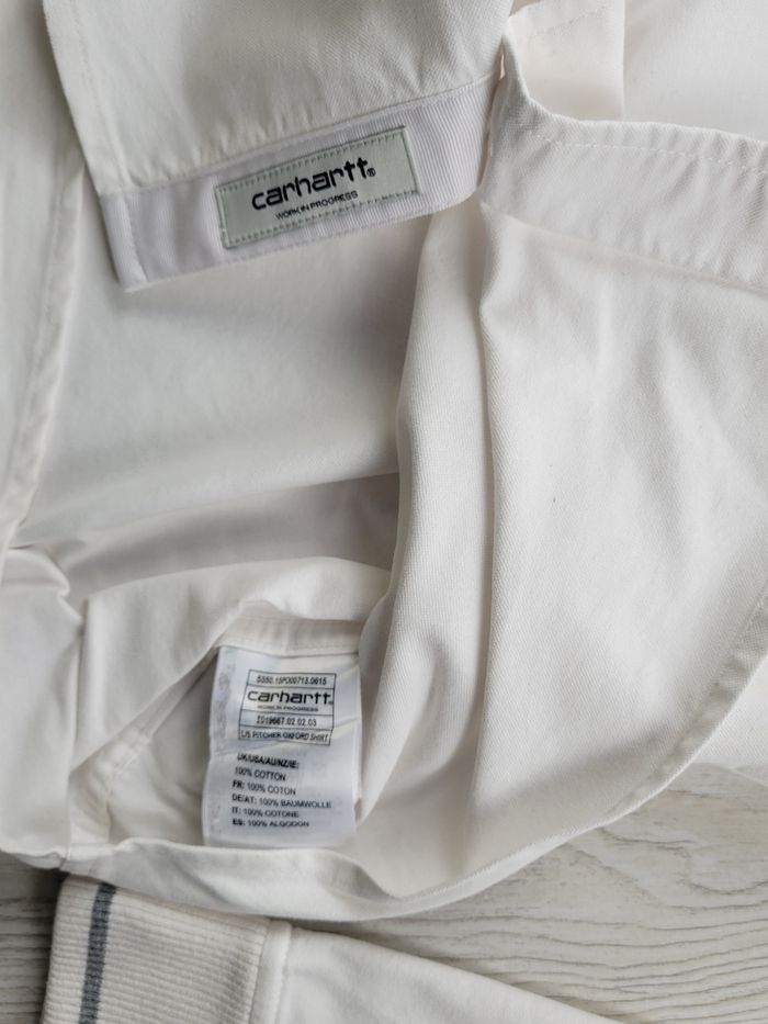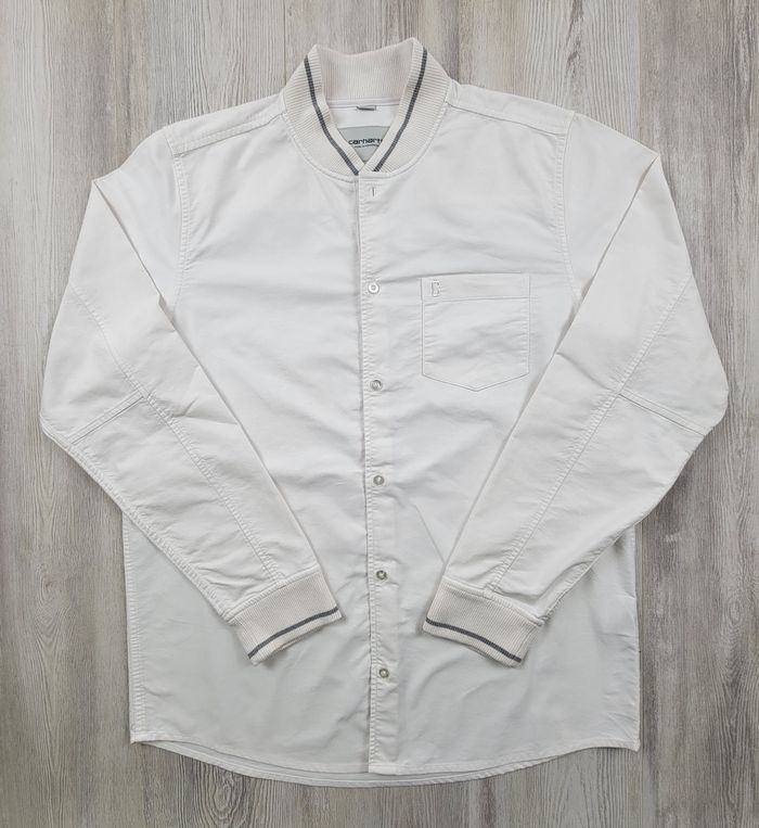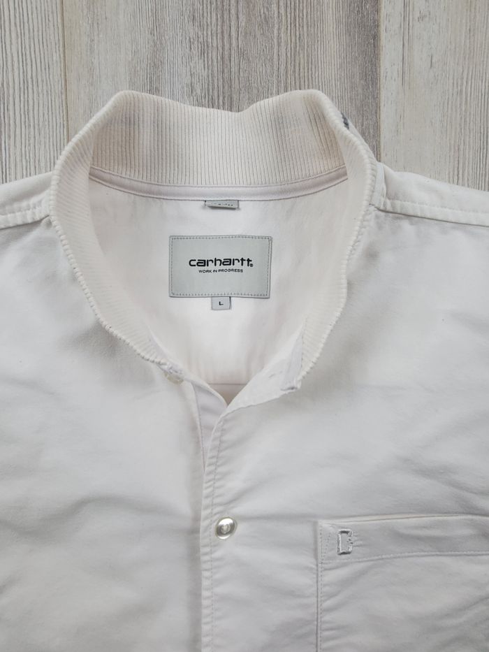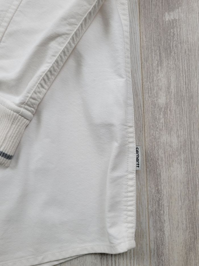 Chemise Carhartt à manches longues en coton épais, toucher proche du denim, style workwear.