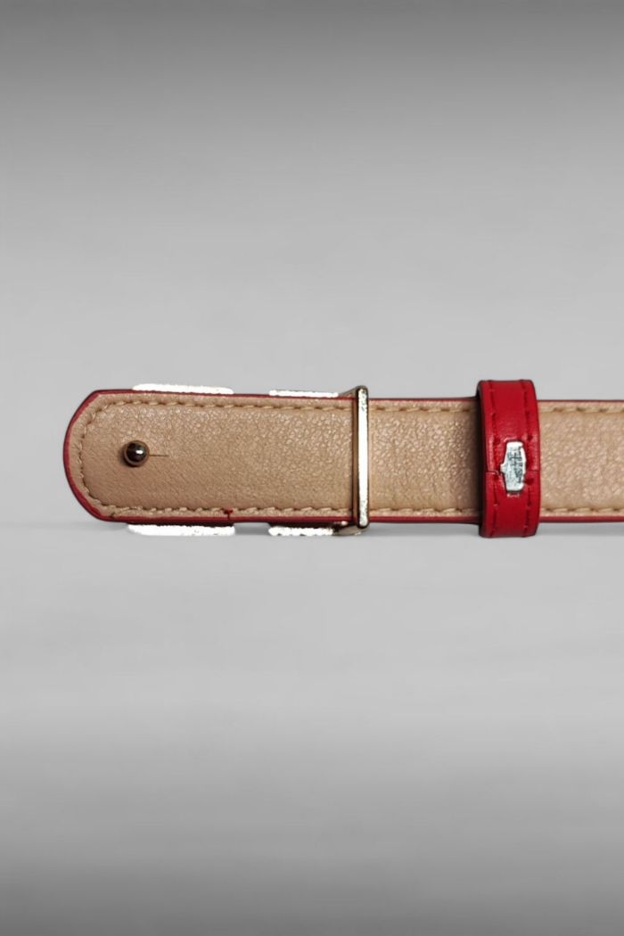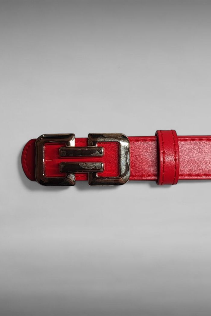 Coloris rouge avec boucle en acier dorée, idéale pour apporter une touche élégante et affirmée à tes tenues.