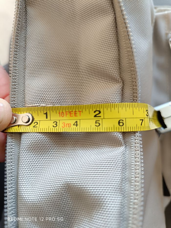 24 x 24 cm avec une poche à soufflet zippée donc qui peut rester fermé ou être ouverte ( maxi 7 cm) comme neuve très très peu porté