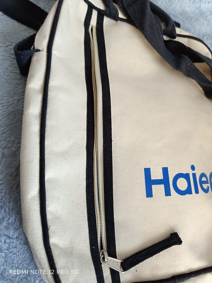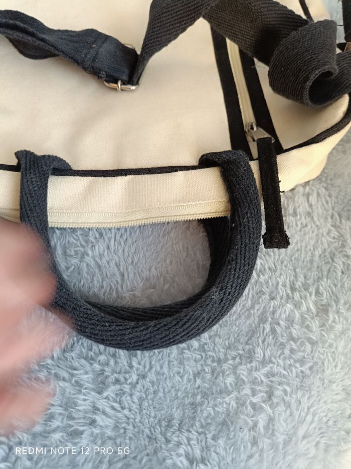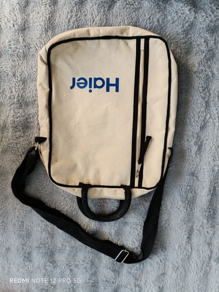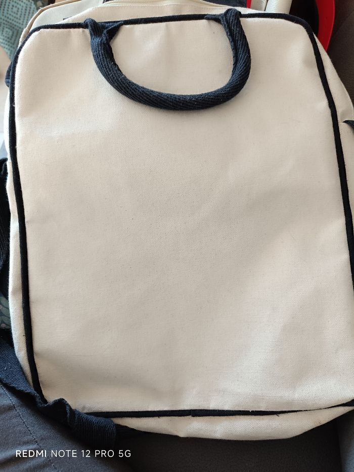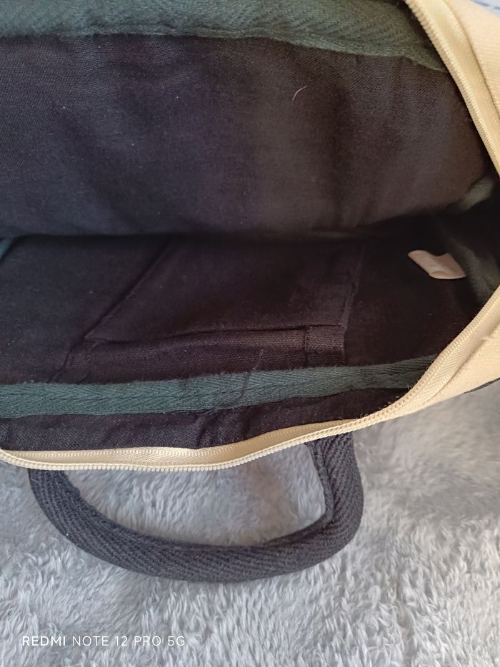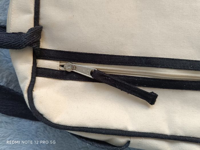 Sacoche beige toile hybride neuve avec 2 poches zippées dont 1 devant et 1 grande et 1 petite sans