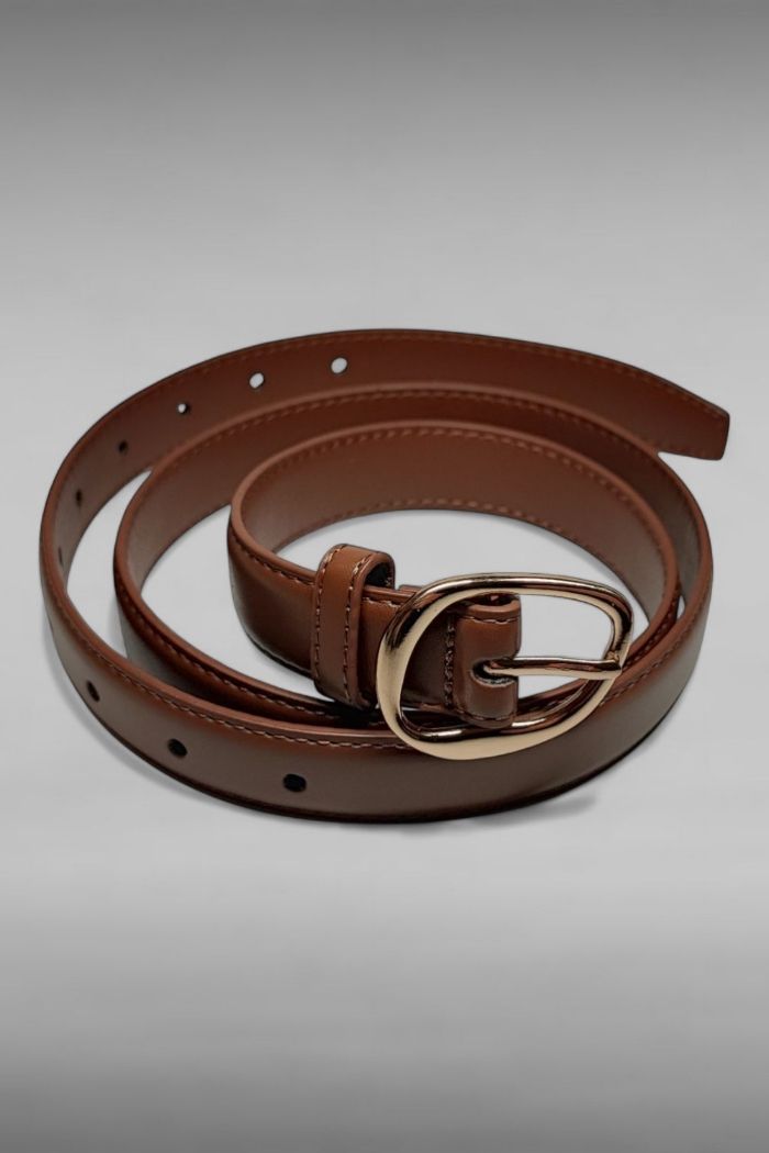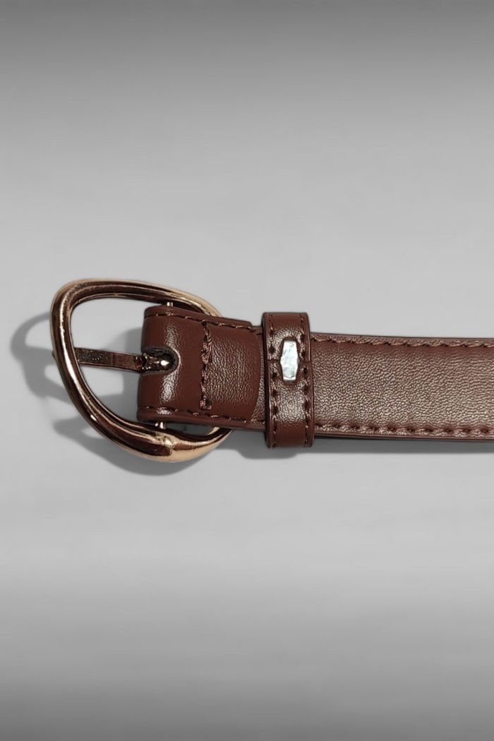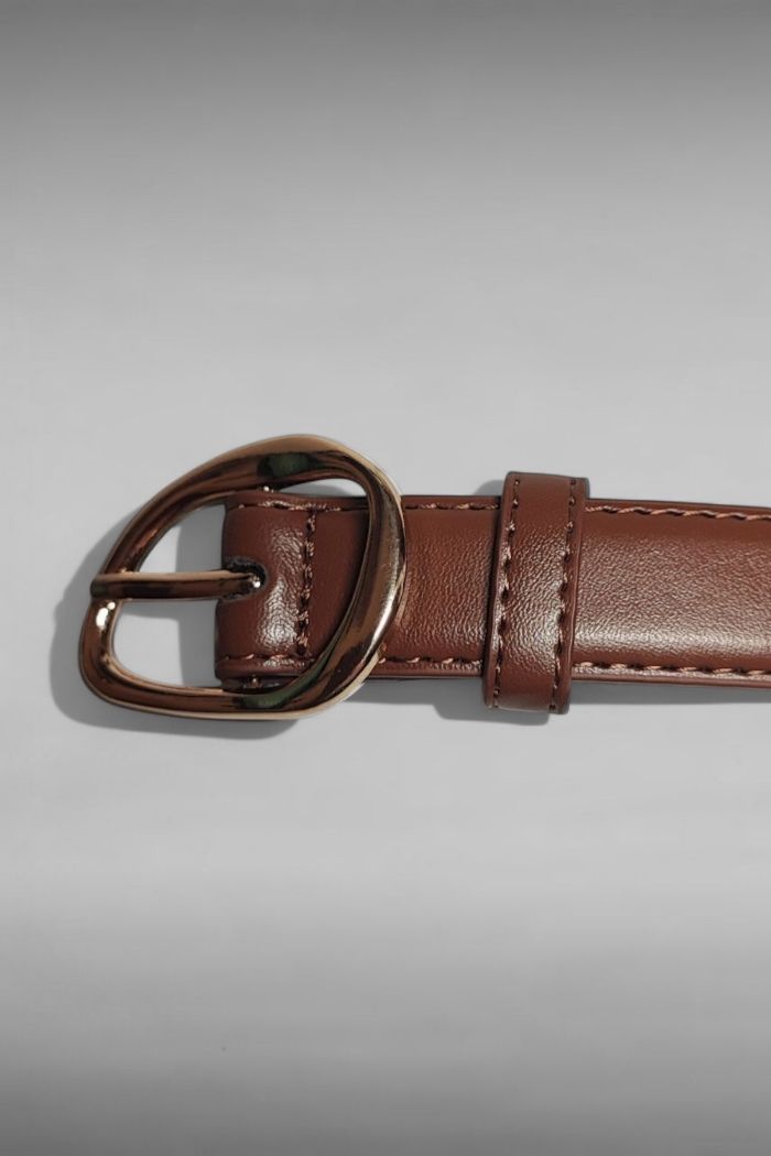 Coloris marron clair avec boucle en acier dorée, idéale pour apporter une touche élégante et affirmée à tes tenues.