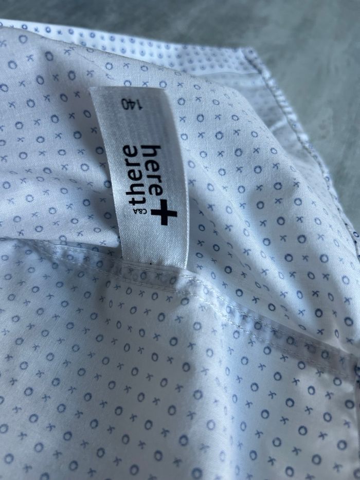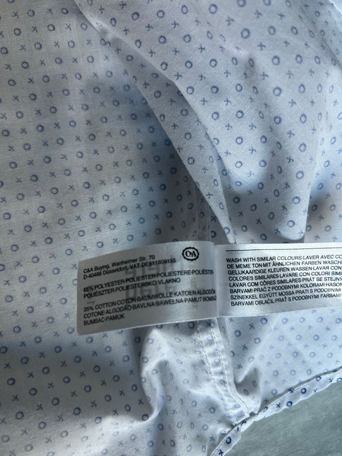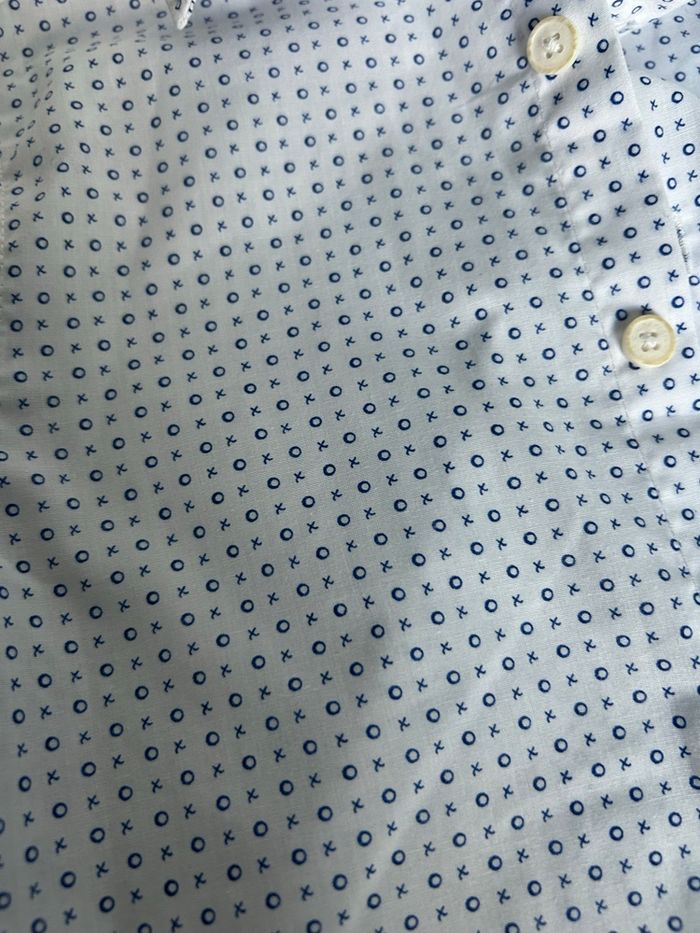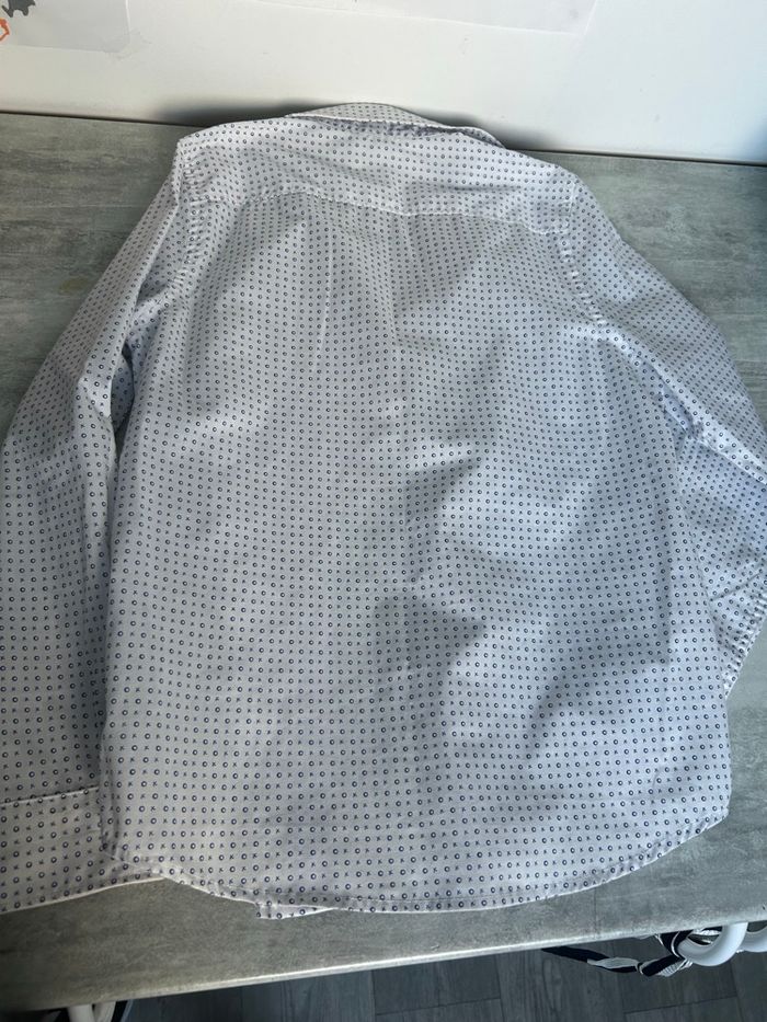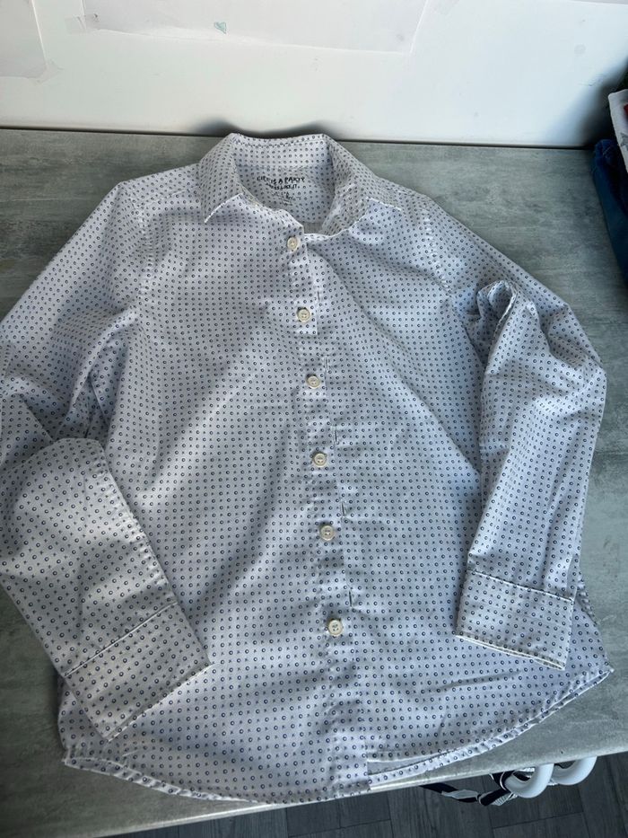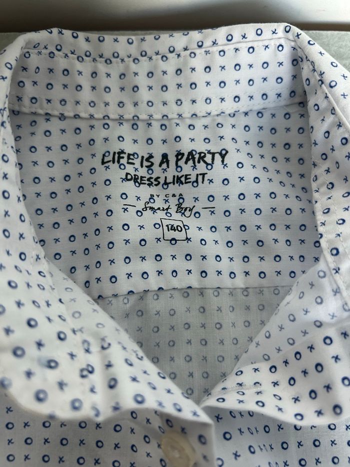 Chemise manches longues garçon 10 ans C&A blanche avec motifs bleu