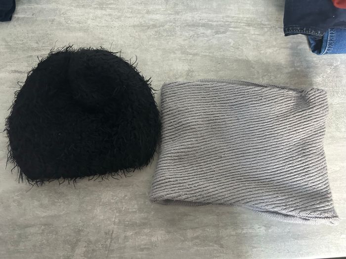 Ensemble bonnet noir et tour de cou gris clair enfant fille 6-10 ans