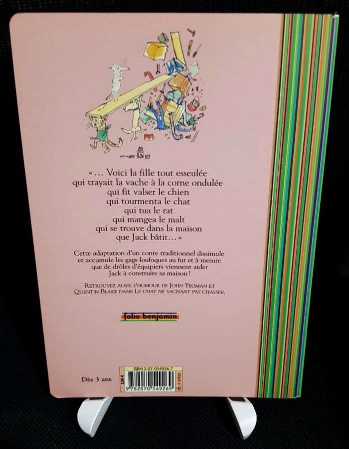 « ... Voici la fille tout esseulée qui trayait la vache à la corne ondulée qui fit valser le chien qui tourmenta le chat qui tua le rat qui mangea le malt qui se trouve dans la maison que Jack bâtit... » Un conte traditionnel qui dissimule et accumule des gags loufoques et délicieux au fur et à mesure que de drôles d'équipiers viennent aider Jack à bâtir son extraordinaire maison !