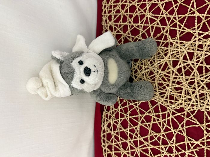 Doudou Chien Lascar Gris blanc bonnet blanc - photo numéro 3