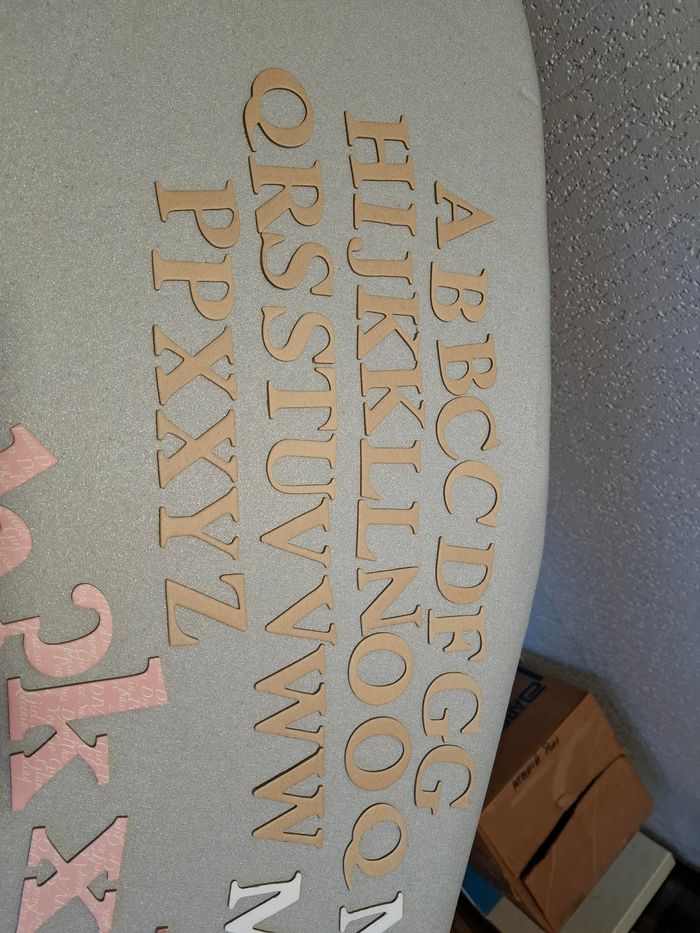 Dimension des lettres en carton brut (peuvent être peintes) pour le L par exemple : 3,5 x 4 cm