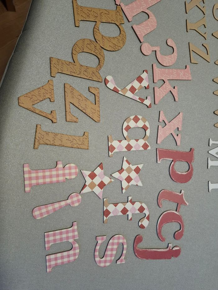 Gros lot de 63 grosses lettres en carton épais, idéales pour scrapbooking (initiales de début de texte/phrase ou initiales de prénom) ou pour autre loisir créatif.