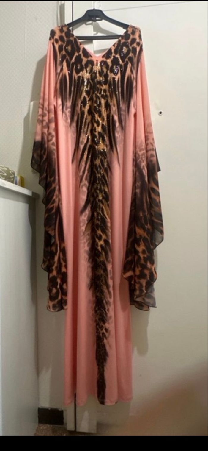 Robe abaya Doubaï corail imprimer animal très manche papillon foulard imprimer taille U