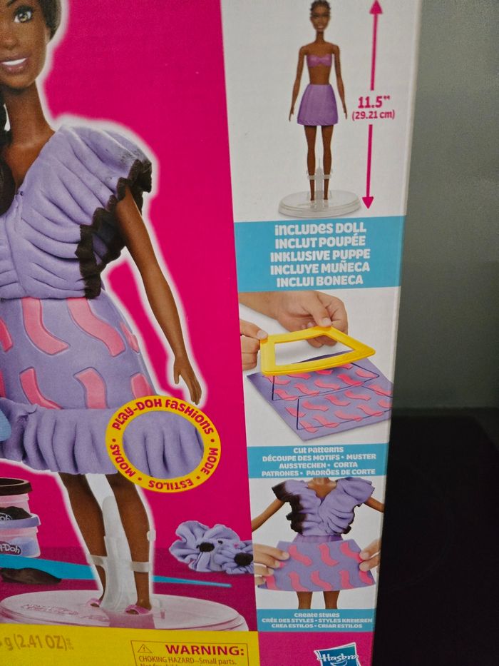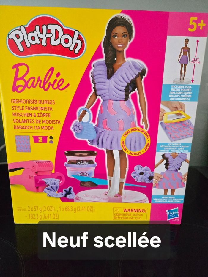 Neuf boîte scellée. coffret Play-Doh Barbie - Style Fashionista offre à votre enfant une activité créative passionnante en combinant l’univers de Barbie avec celui de la pâte à modeler. Conçu pour les enfants dès 5 ans, ce coffret permet de créer et personnaliser les tenues d’une vraie poupée Barbie de 29 cm, entièrement habillée avec des vêtements fabriqués en pâte à modeler Play-Doh.