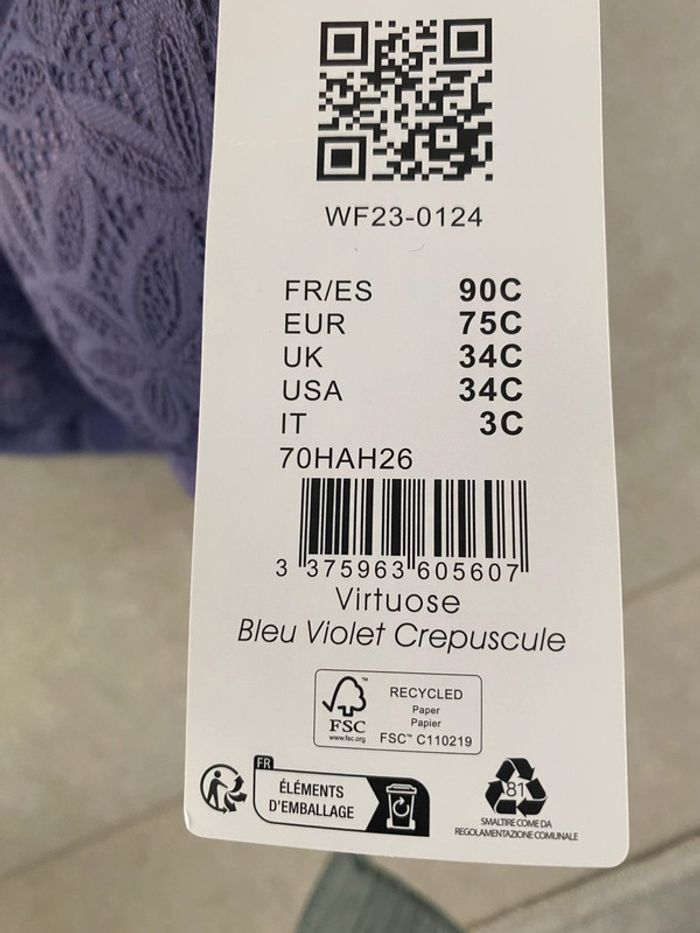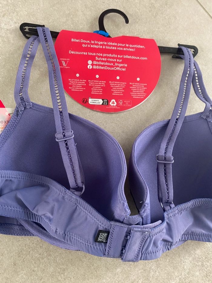 Soutien-gorge neuf avec étiquettes de la marque Billet Doux, modèle Virtuose en coloris Bleu Violet Crépuscule.