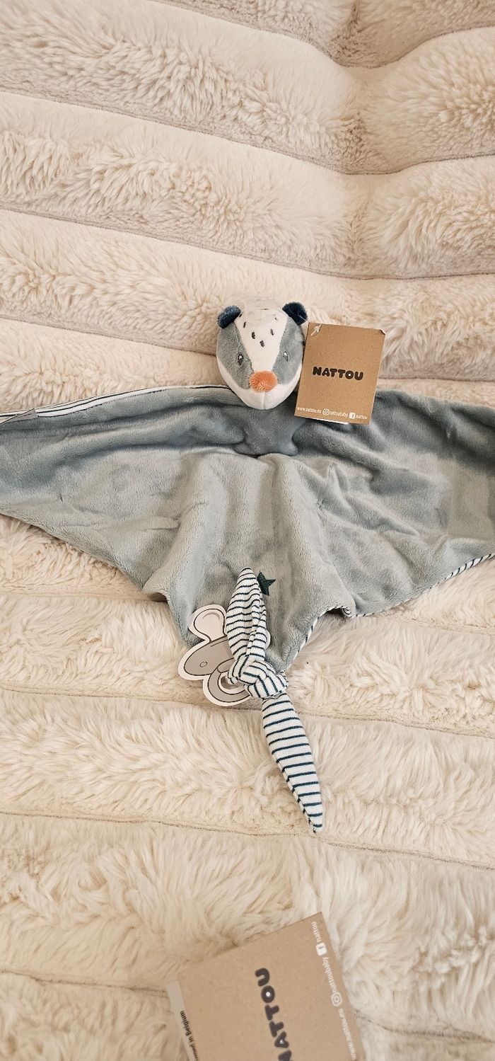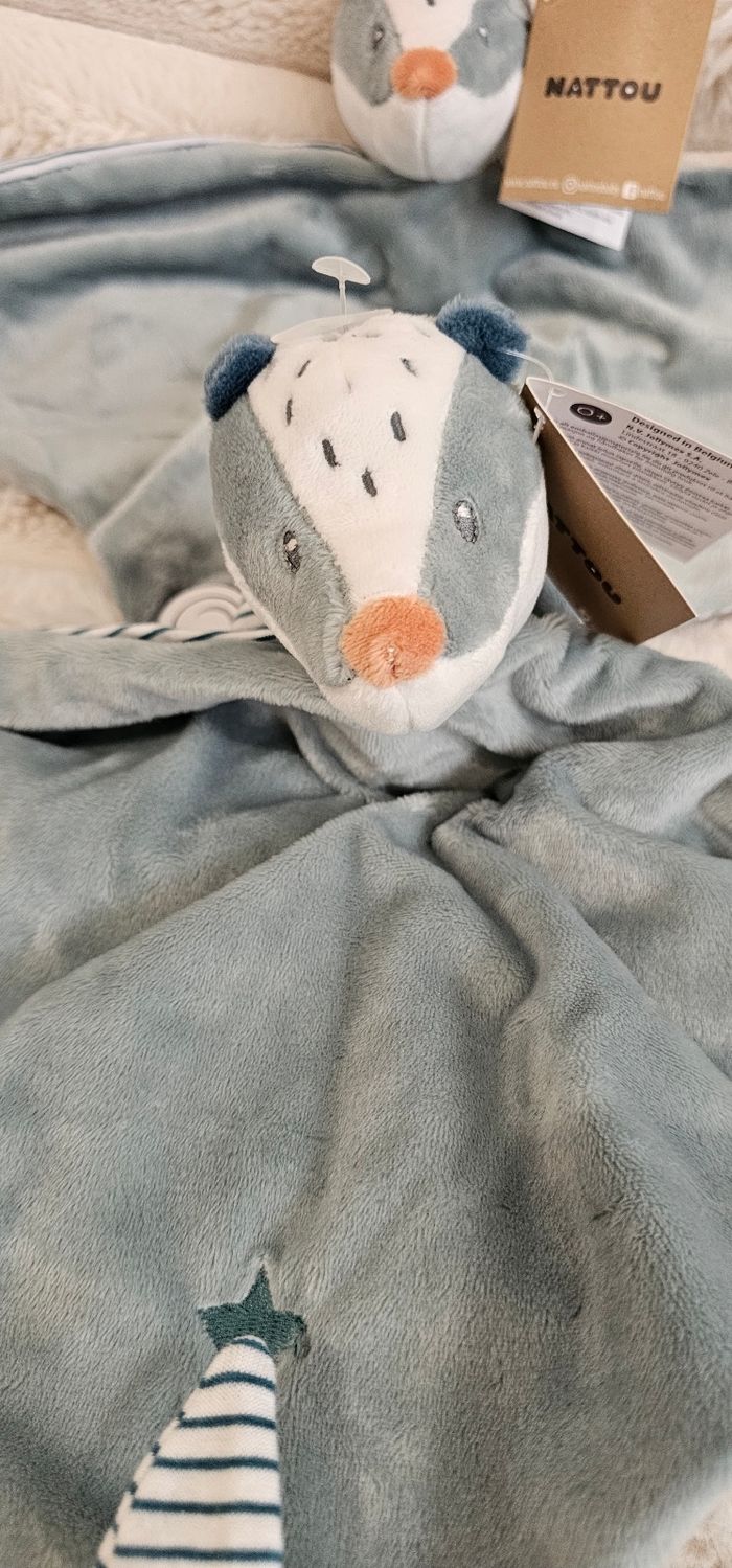Le maxi doudou blaireau Félix est l'ami inséparable de votre bébé dès la naissance et le réconfort en cas de besoin.
