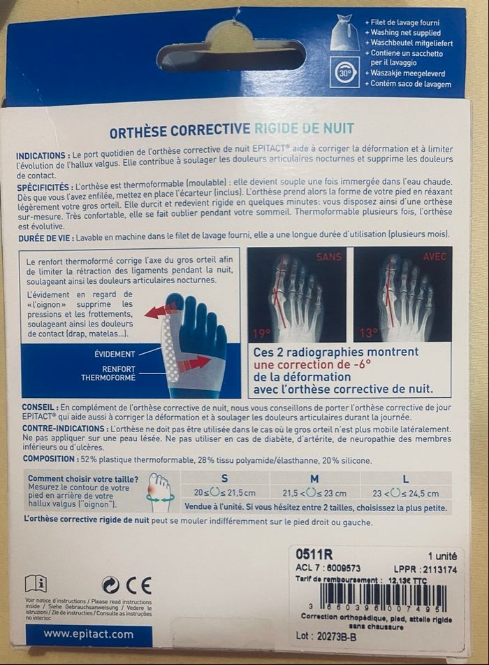 Orthèse corrective rigide de nuit