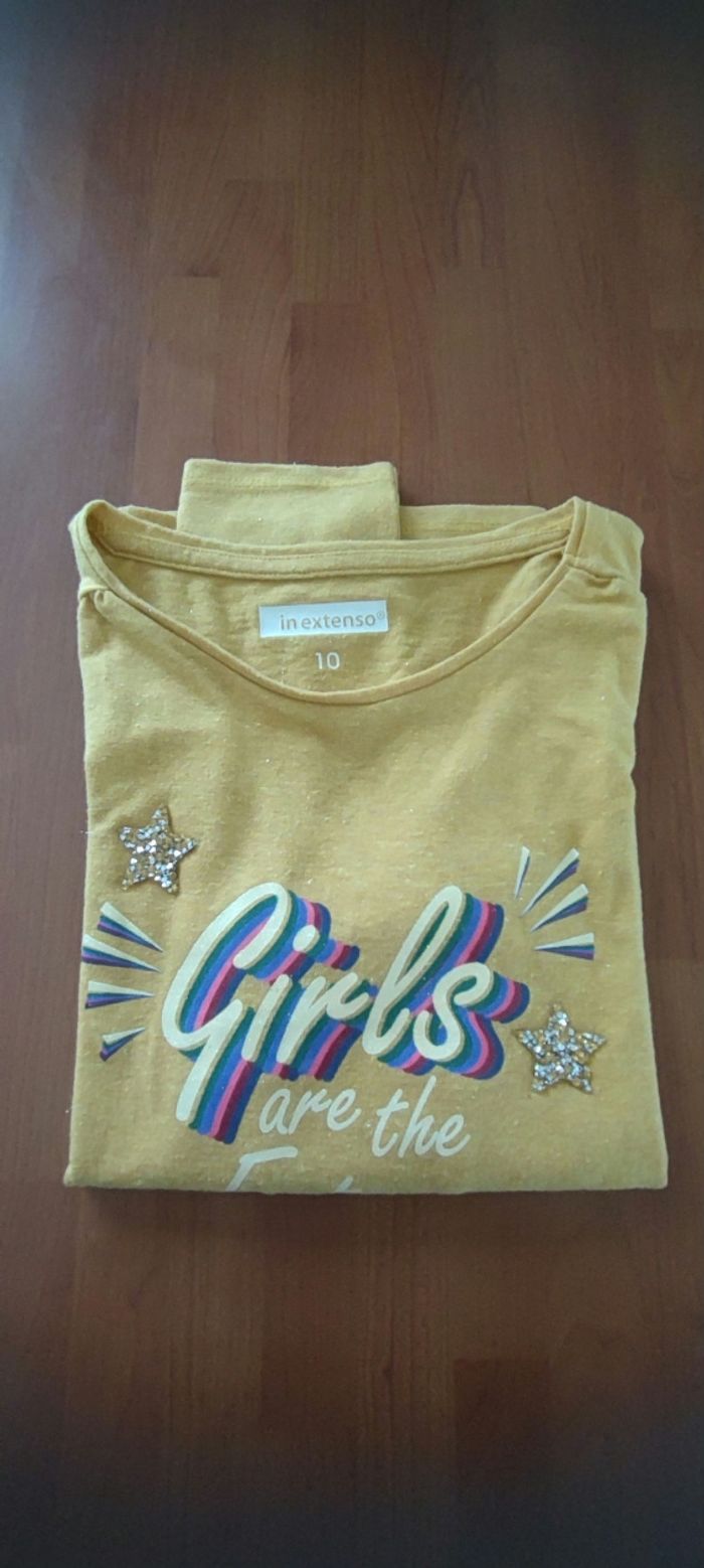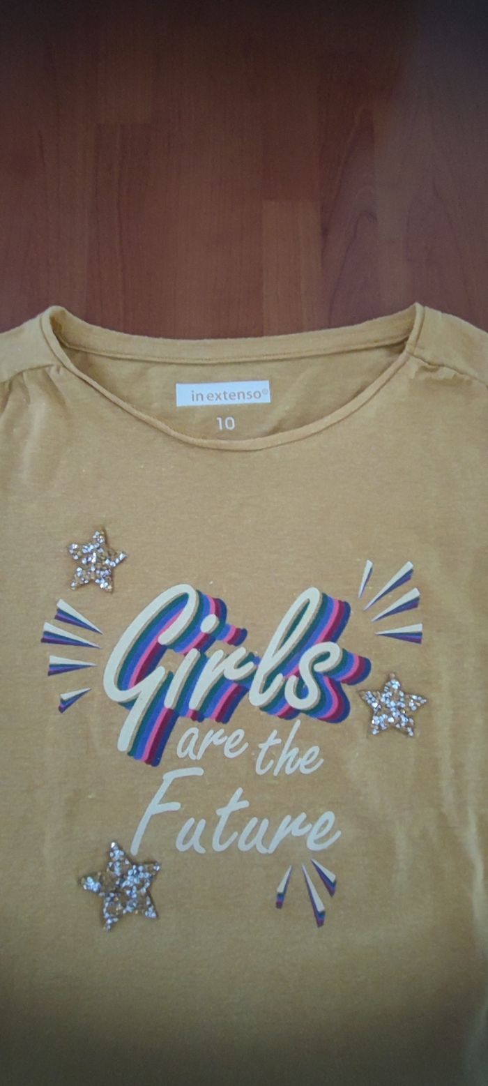 ["Type de produit : Tee-shirt", "Marque : In Extenso", "Taille : 10 ans / 140 cm", "Couleur : Jaune / Moutarde", "Caractéristiques : Manches longues, Imprimé "Girls are the future""]