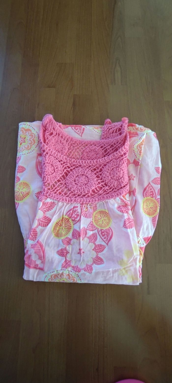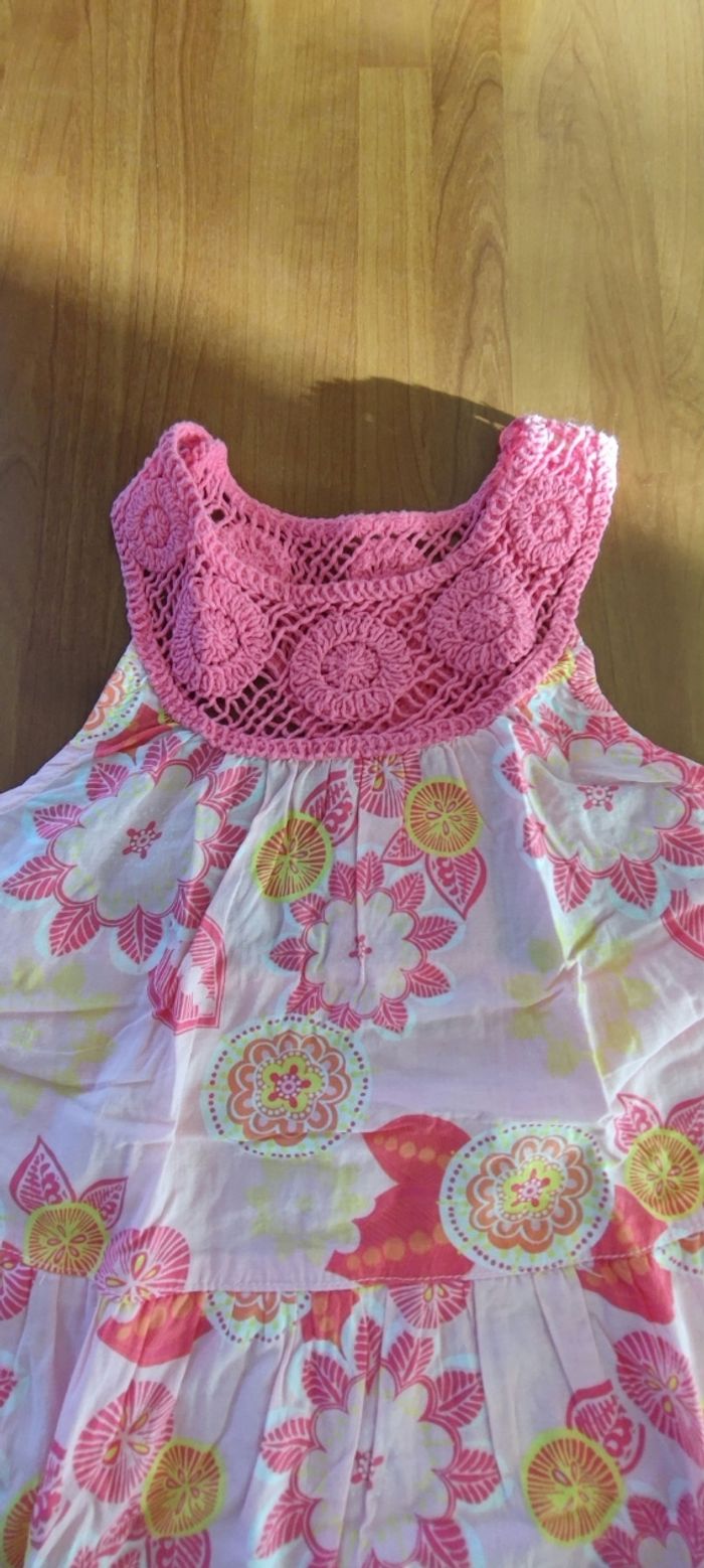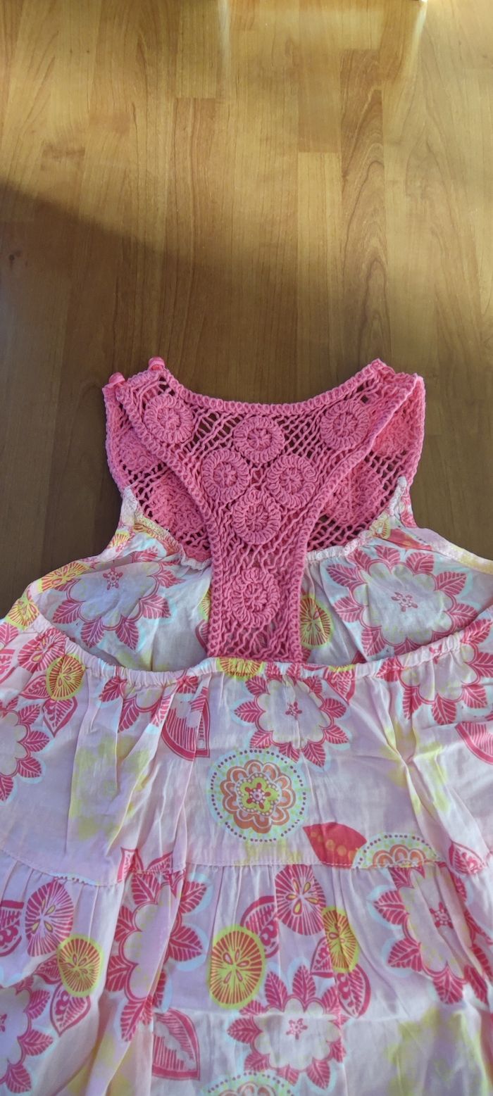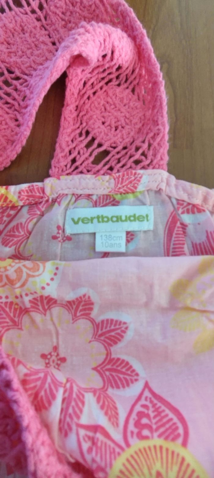 Je vends cette jolie blouse sans manches pour enfant de la marque Vertbaudet, dans un joli motif fleuri rose et blanc.