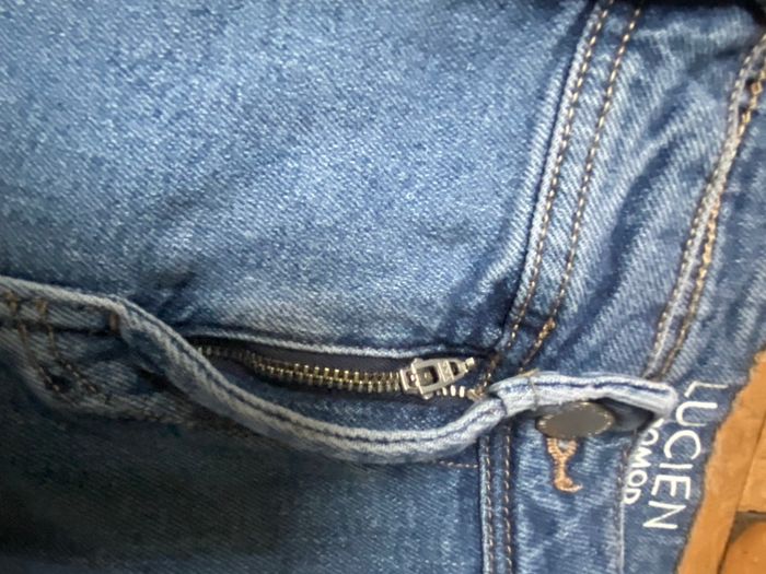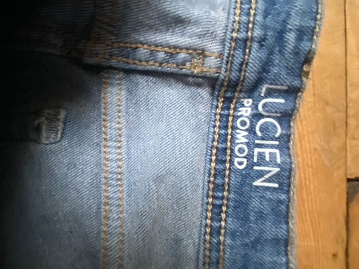 Jeans Lucien bleu denim stretch Plus aucune étiquette Taille 44 Promod La ceinture mesure à plat sans tirer 42,7 cm, va jusqu'à 48,5 cm en tirant Longueur milieu devant 24,5 cm Longueur entre jambes 73,5 cm Largeur à plat bas des jambes 17,5 cm