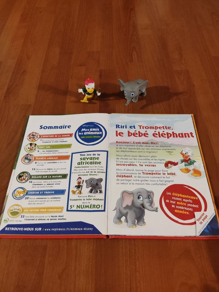 Livre et ses 2 figurines Riri et le bébé éléphant collection Disney nature mes amis les animaux tome 5