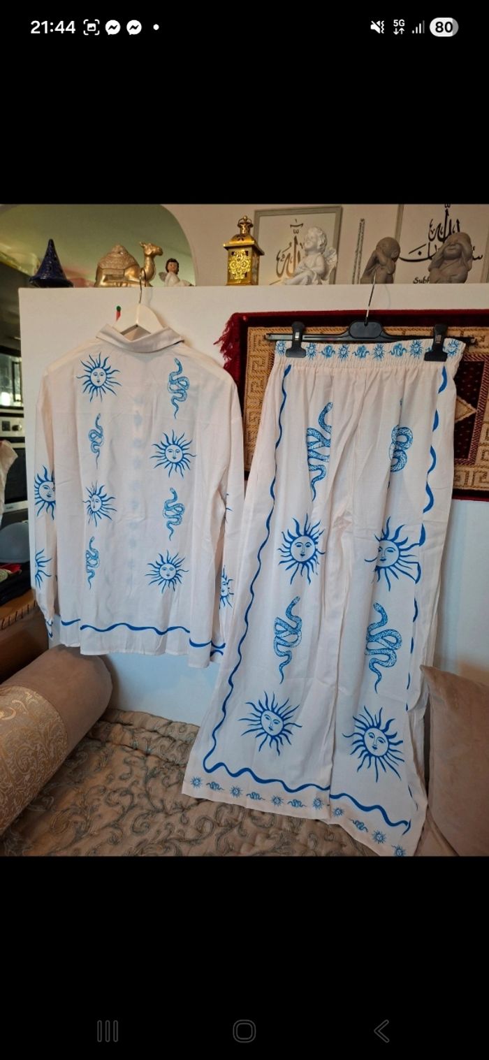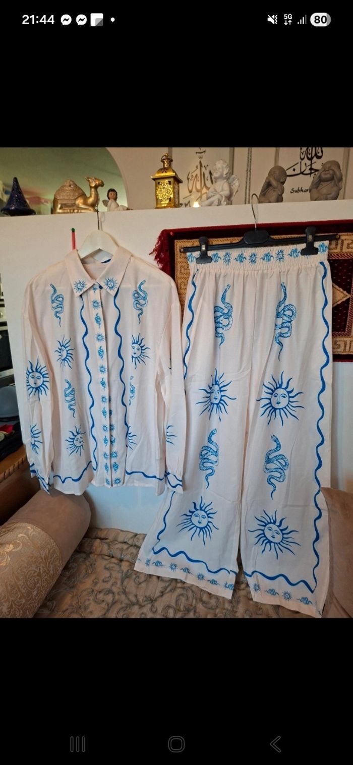😃pantalon + chemise blanc et bleu taille 36 marque fashion by fordeal neuf Polyester. Lin Prix 6 euro