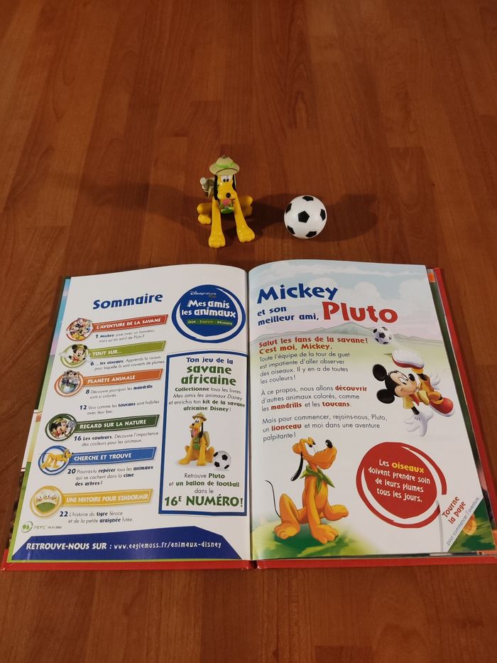 Livre et ses 2 figurines pluto et son ballon collection Disney nature mes amis les animaux tome 16