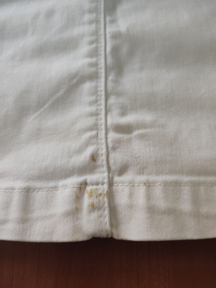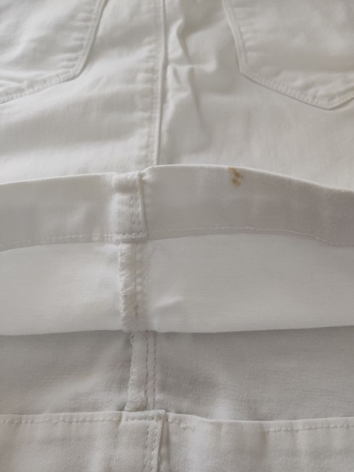 Jupe en jean blanche taille 36 petites tâches sur la couture en bas à l'arrière de la jupe voir photos mais reste en très bon état