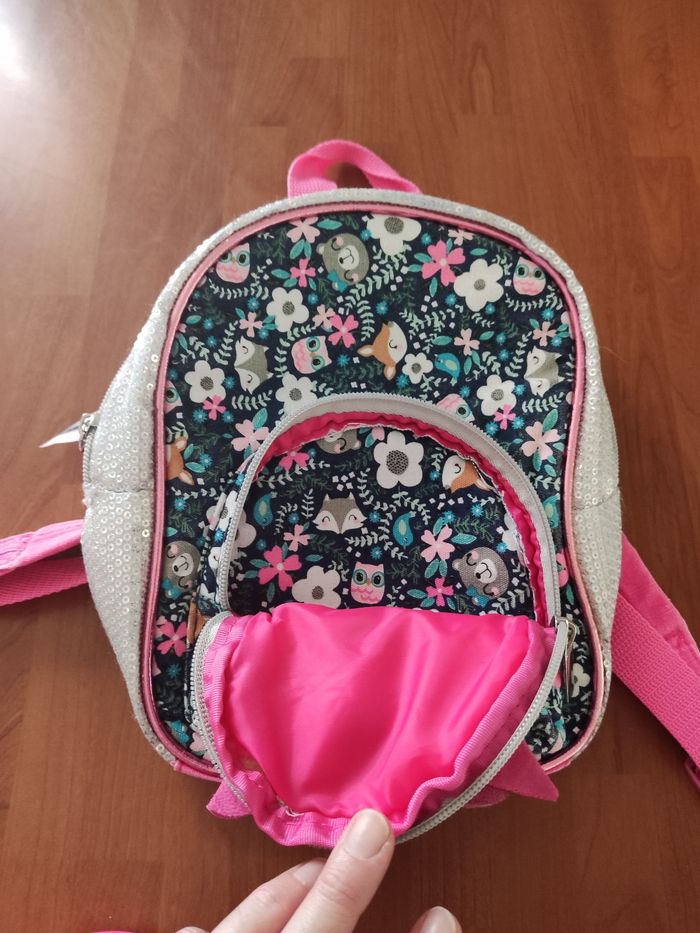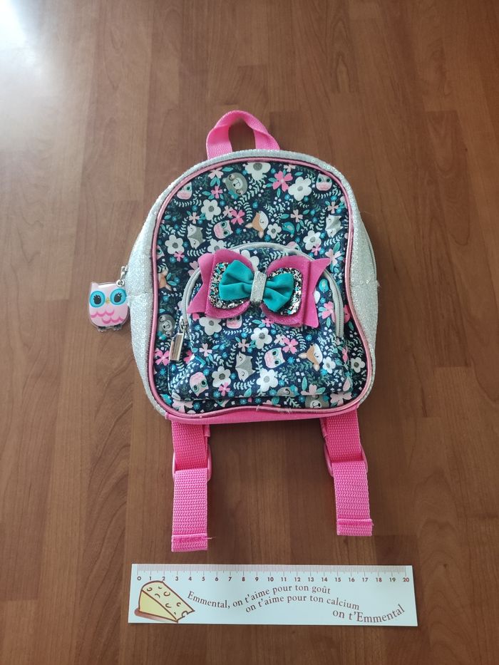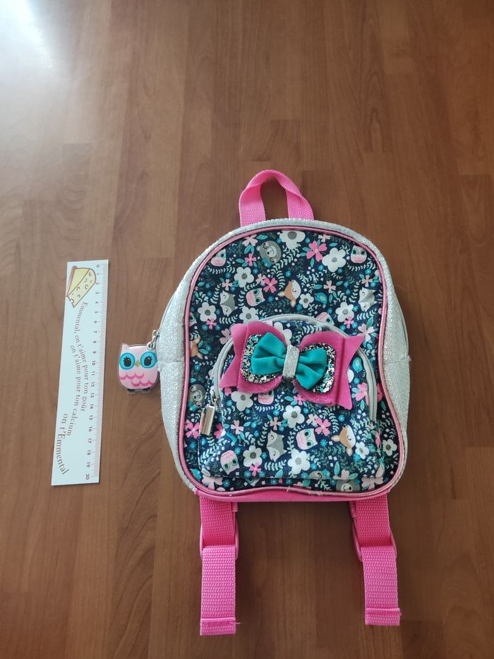 Je vends ce joli sac à dos enfant de la marque Claire's, avec un motif fleuri et des hiboux.