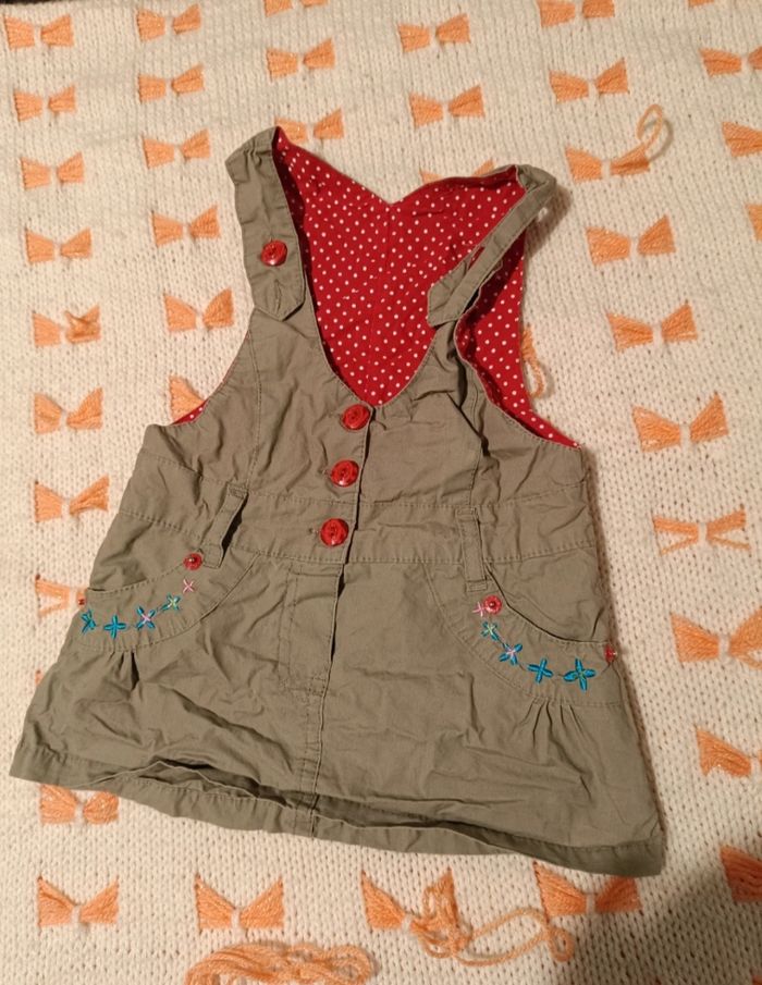 ravissante robe légère à bretelles, parfaite pour les beaux jours ou pour une occasion particulière. ✨ Caractéristiques : Marque : Sans marque (pas d'étiquette de marque visible). Taille : Convient pour du 6-12 mois (selon la coupe et l'élasticité). Couleur : Fond bordeaux / lie-de-vin avec de délicats motifs fleuris blancs. Matière : Tissu léger et fluide, très agréable à porter. 💡 Les détails craquants : Col smocké : L'encolure est élastiquée et ornée de petits volants pour un style bohème. Bretelles confortables : Larges bretelles élastiquées qui assurent un bon maintien sans serrer bébé. Praticité : Ouverture boutonnée discrète dans le dos pour faciliter l'habillage. 📏 État : Très bon état
